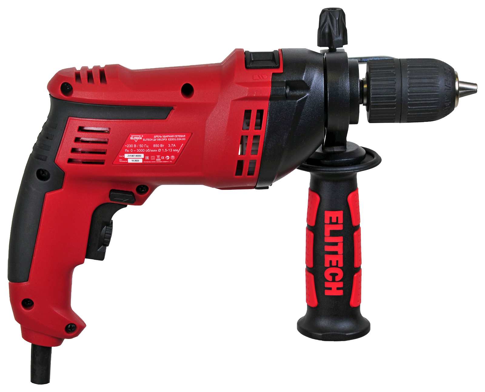 Дрель ударная ELITECH ДУ 0913РЭ (E2201.034.01). Предназначена для сверления отверстий в дереве, гипсокартоне, керамической плитке, металле, пластмассе, кирпиче, бетоне и других производных материалах. В качестве рабочей насадки для сверления используют сверло соответствующего типа (по дереву, по металлу и т.п.), для режима сверления с ударом используется специальное сверло с твердосплавным наконечником.
