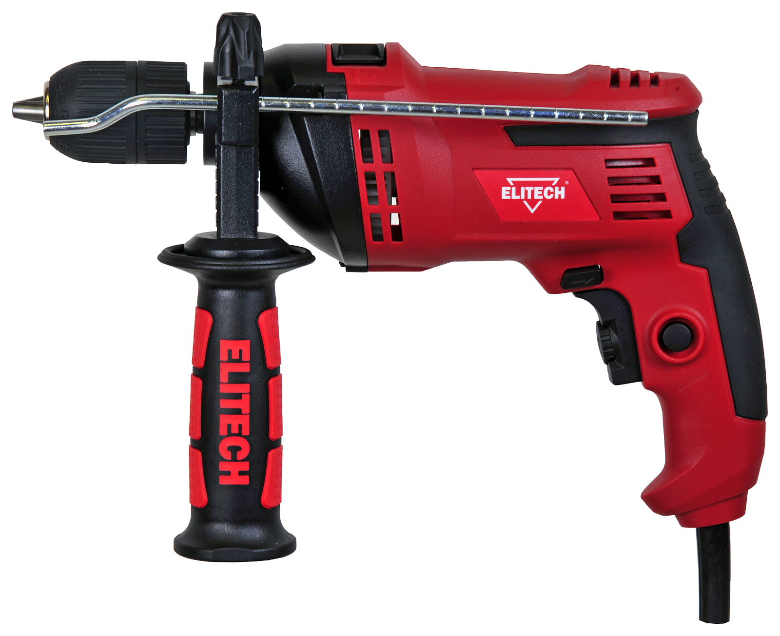 Дрель ударная ELITECH ДУ 0913РЭ (E2201.034.01) мощностью 850 Вт имеет два режима работы - сверление и сверление с ударом. Режим обычного сверления предназначен для работы с деревом и материалов на его основе, металлом, пластмассой, гипсокартоном, керамикой и другими аналогичными материалами. Режим сверления с ударом предназначен для работы с кирпичом и аналогичными легкими минеральными строительными материалами, например газо и пенобетоном. Для работы в этом режиме используется сверло с твердосплавной напайкой.