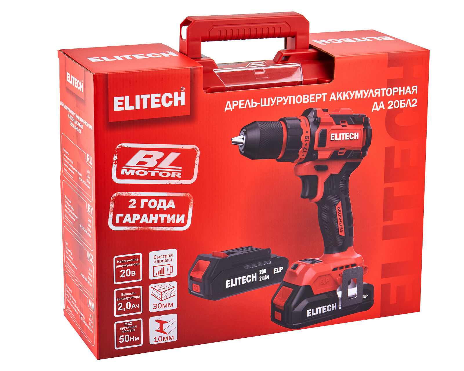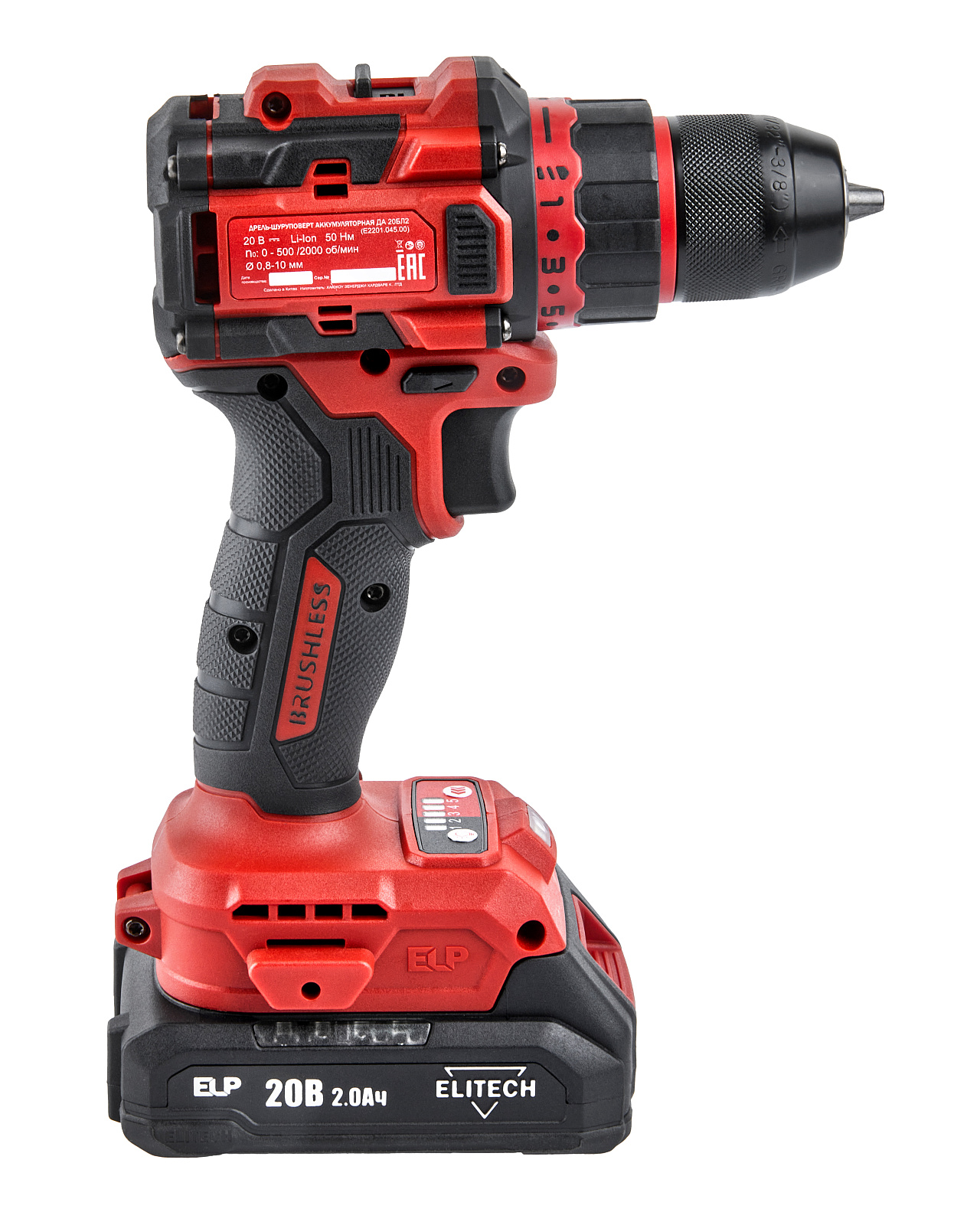 Дрель ак, б\щет, 20В, 2х2.0Ач, ELP, БЗП-13мм, 0-500\1800об\м, 50Нм, 1.2кг, чем, подсветка