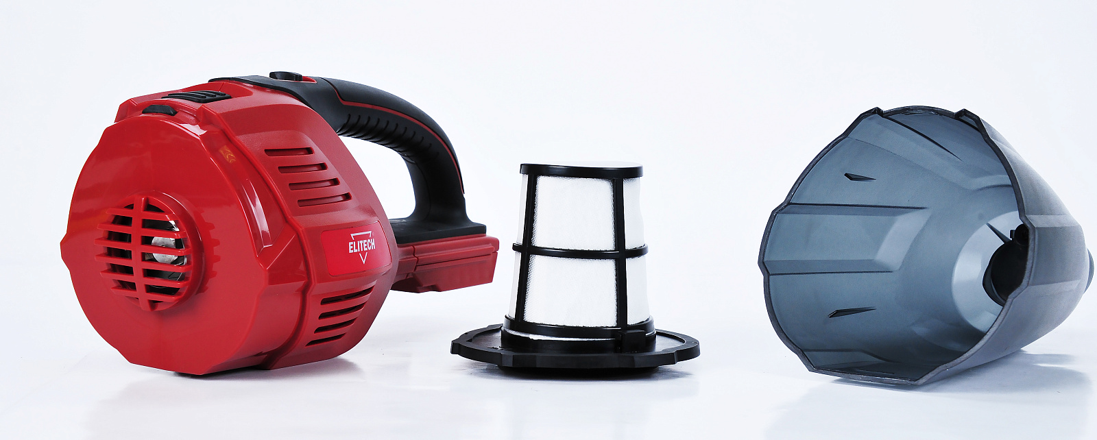 Пылесос аккумуляторный ELITECH ПРА 18СЛ (Е1302.001.01) предназначен для сбора бытовой пыли и мусора, уборки помещений, салона автомобиля, чистки мягкой мебели. В качестве источника питания используется аккумулятор напряжением 18 В. В пылесосе установлен фильтр класса S (тряпичный, многоразовый, с возможностью стирки). При отсоединение контейнера для пыли от корпуса пылесоса фильтр полностью перекрывает отверстие контейнера и не дает возможности случайно рассыпать его содержимое. В комплекте три насадки для уборки и удлинительная трубка. Время зарядки комплектного аккумулятора емкостью 2 Ач составляет 45 минут. Совместимое зарядное устройство 1820.098200, совместимые аккумуляторы 1820.098600 (2 Ач) и 1820.067700 (4 Ач).
