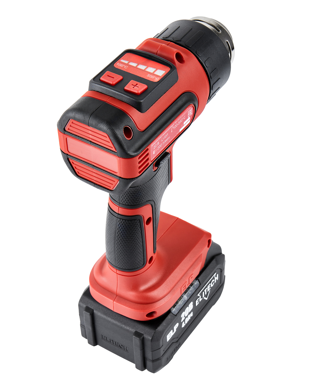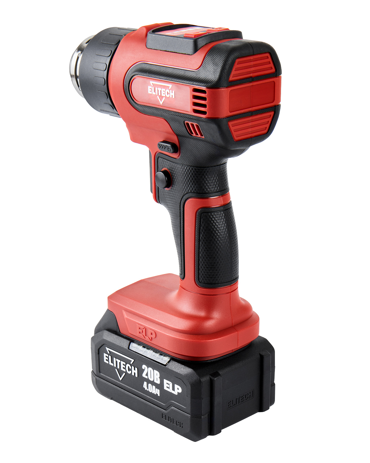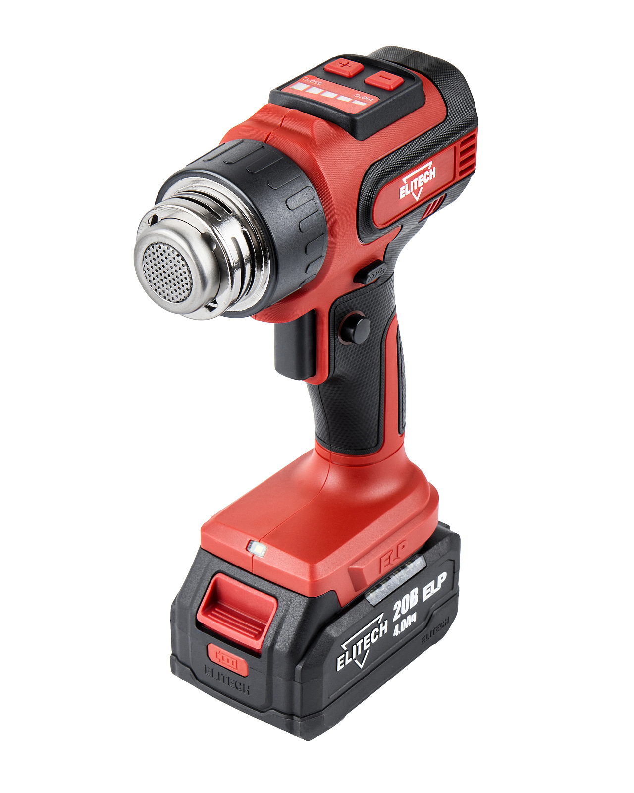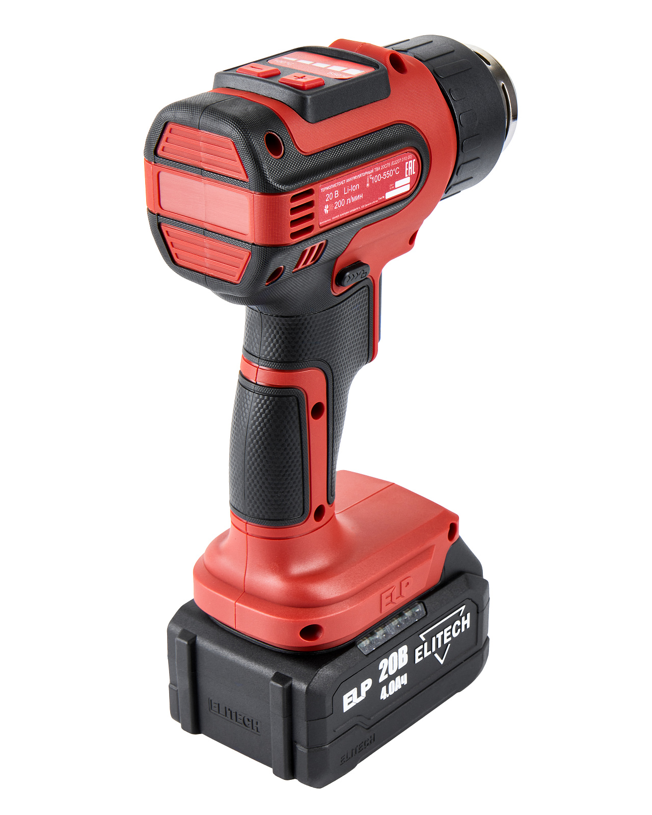 Пистолет г/возд ак, 20В, 1х4.0Ач, ELP, 200л/м, 100-550грС, чем, 520г(или 0.52кг), LED, 4 насадки