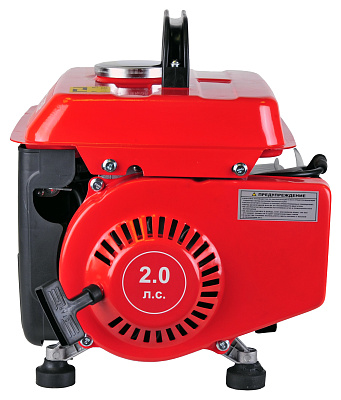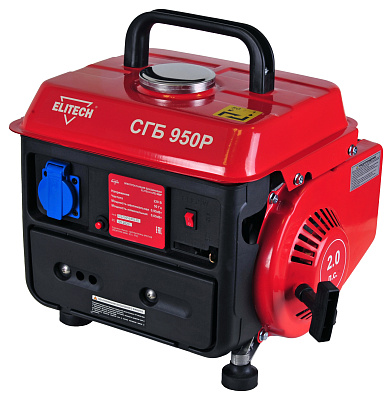 Электростанция СГБ 950Р с двухтактным бензиновым двигателем. Однофазная. Номинальная мощность 0,65кВт. Одна розетка 220В/16А. Ручной стартер.