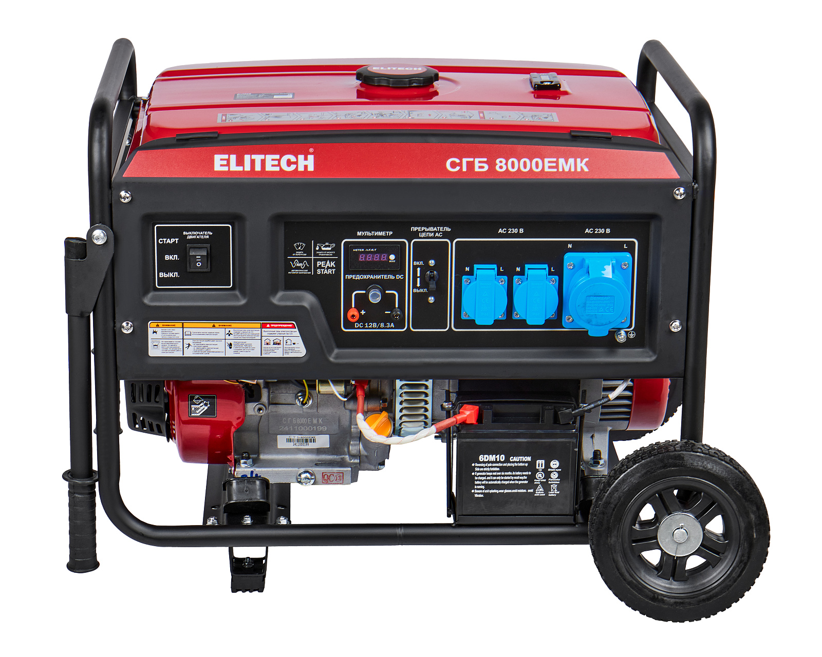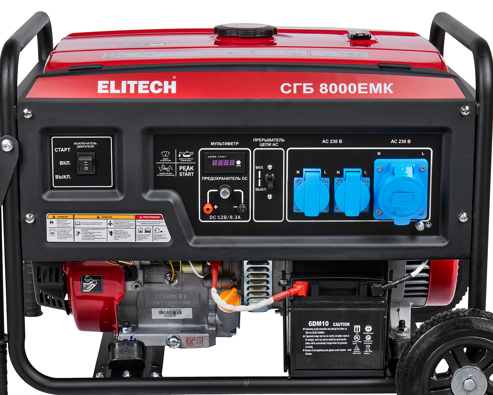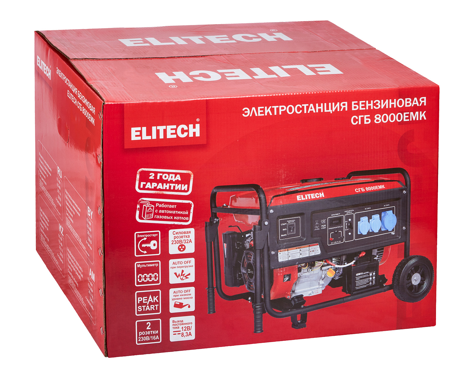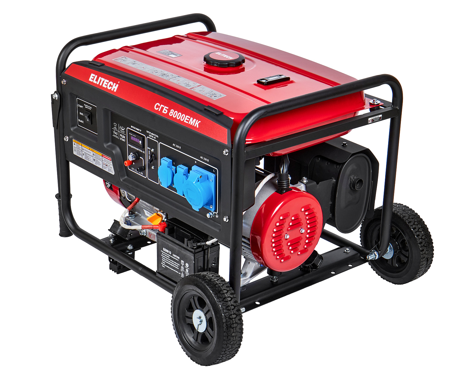 Электростанция СГБ 8000 ЕМК с четырехтактным бензиновым двигателем. Однофазная. Номинальная мощность 6 кВт. Две розетки 220В/16А. Одна розетка 220В/32А. Электростартер.