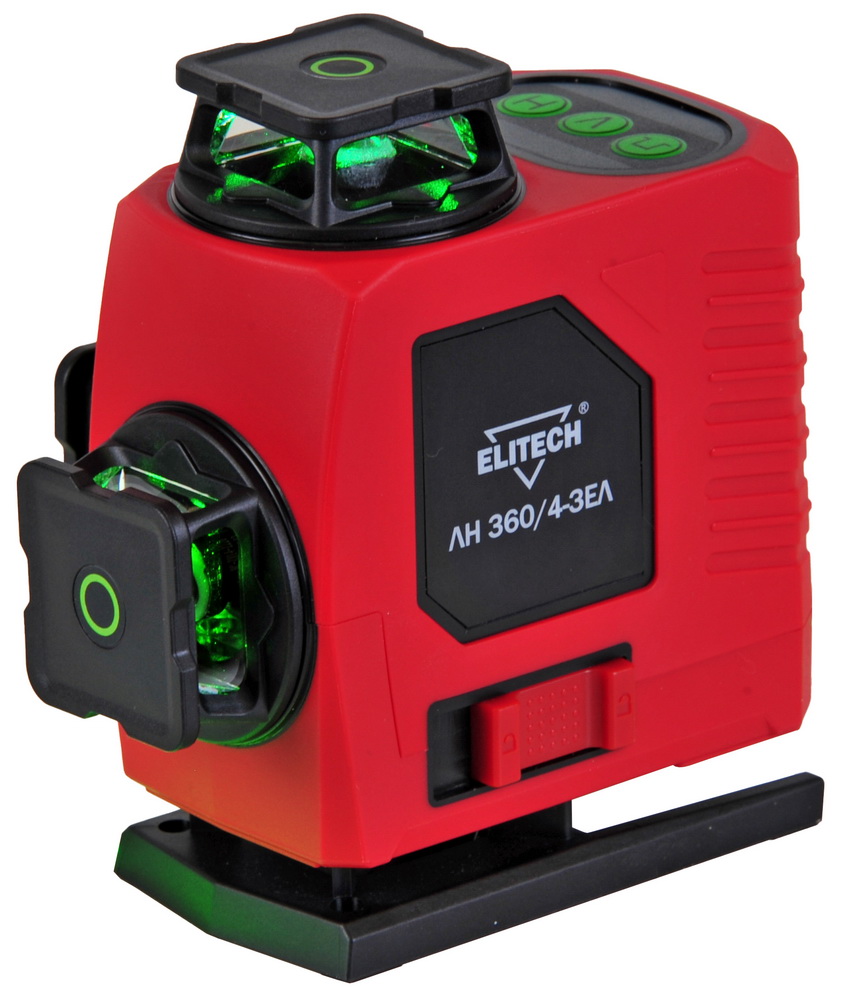 Модель ELITECH ЛН 360/4-ЗЕЛ (Е0306.018.00) проецирует 4 плоскости (2 горизонтальные и 2 вертикальные взаимноперпендикулярные). Пересечения линий образуют 10 точек - под прибором (надир), над прибором (зенит) и 8 точек в горизонтальной плоскости прибора с углом 90° между собой.