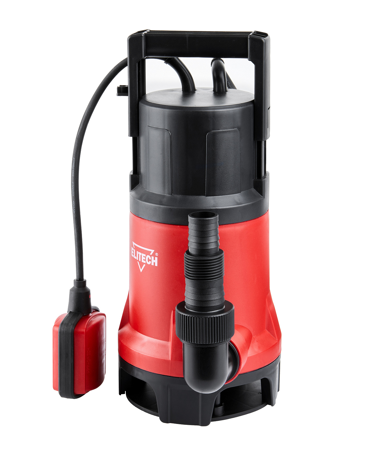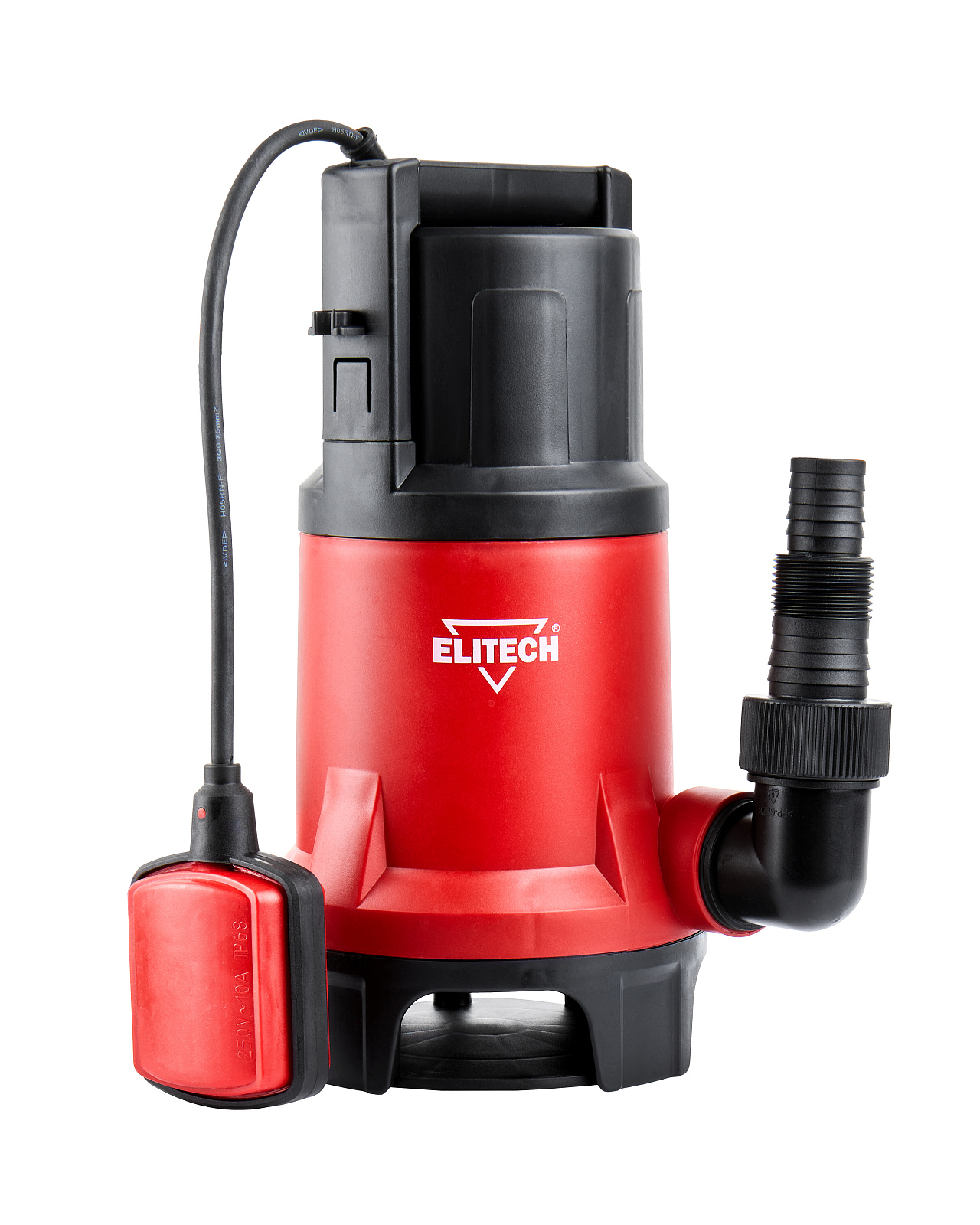 Погружной дренажный насос «ELITECH» мощностью 900 Вт и производительностью 15 500 л/час предназначен для перекачивания загрязненной воды с диаметром твердых частиц не более 35 мм из колодцев, открытых водоемов, затапливаемых подвалов и других источников. Максимальная температура воды не должна превышать 35°С. Насос не предназначен для перекачивания едких, легковоспламеняемых и взрывчатых веществ (нефть, бензин, растворители), а также масел и жиров. Насос оснащен поплавковым выключателем, который позволяет ему работать в автоматическом режиме в зависимости от изменения уровня воды.