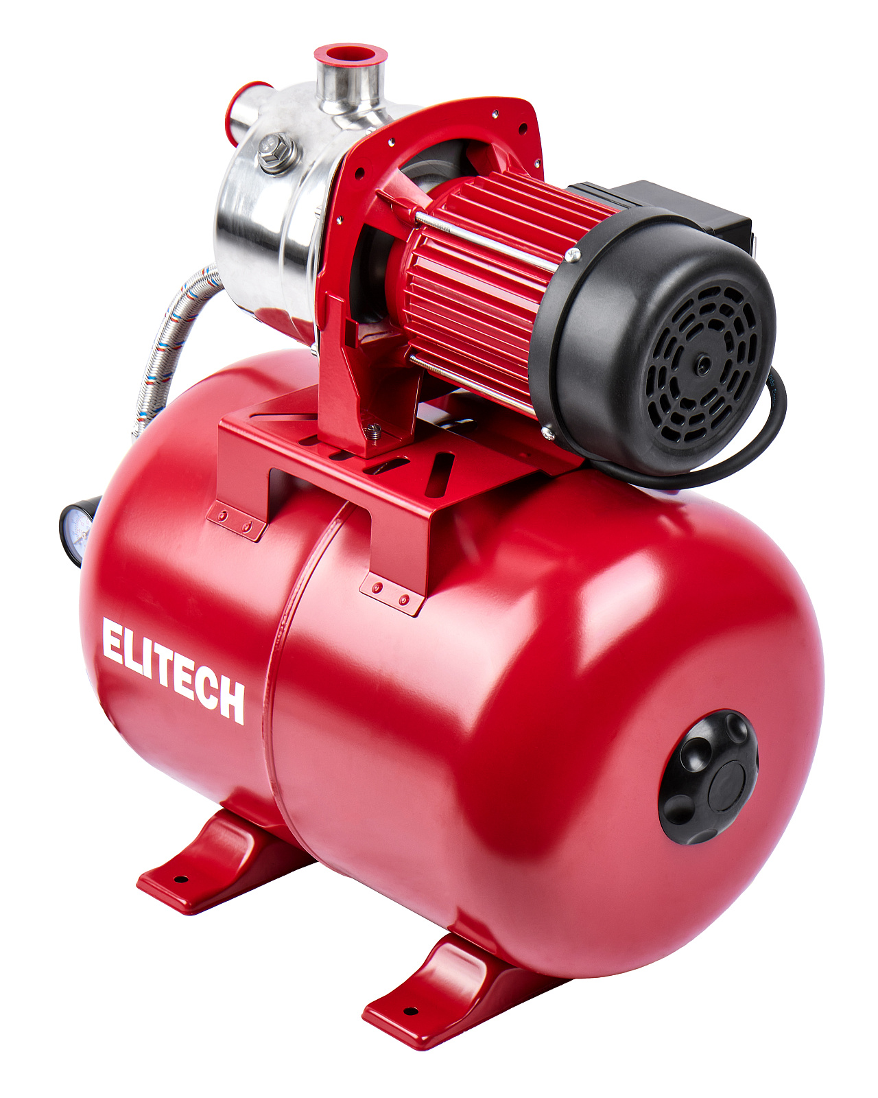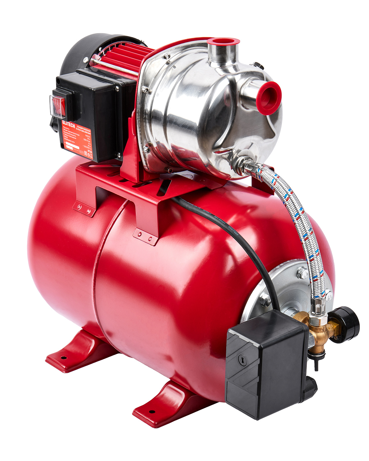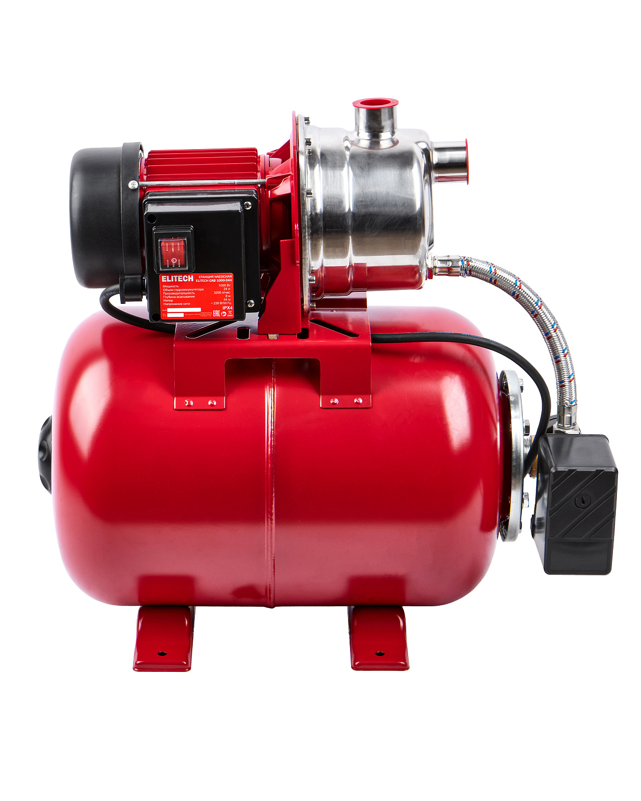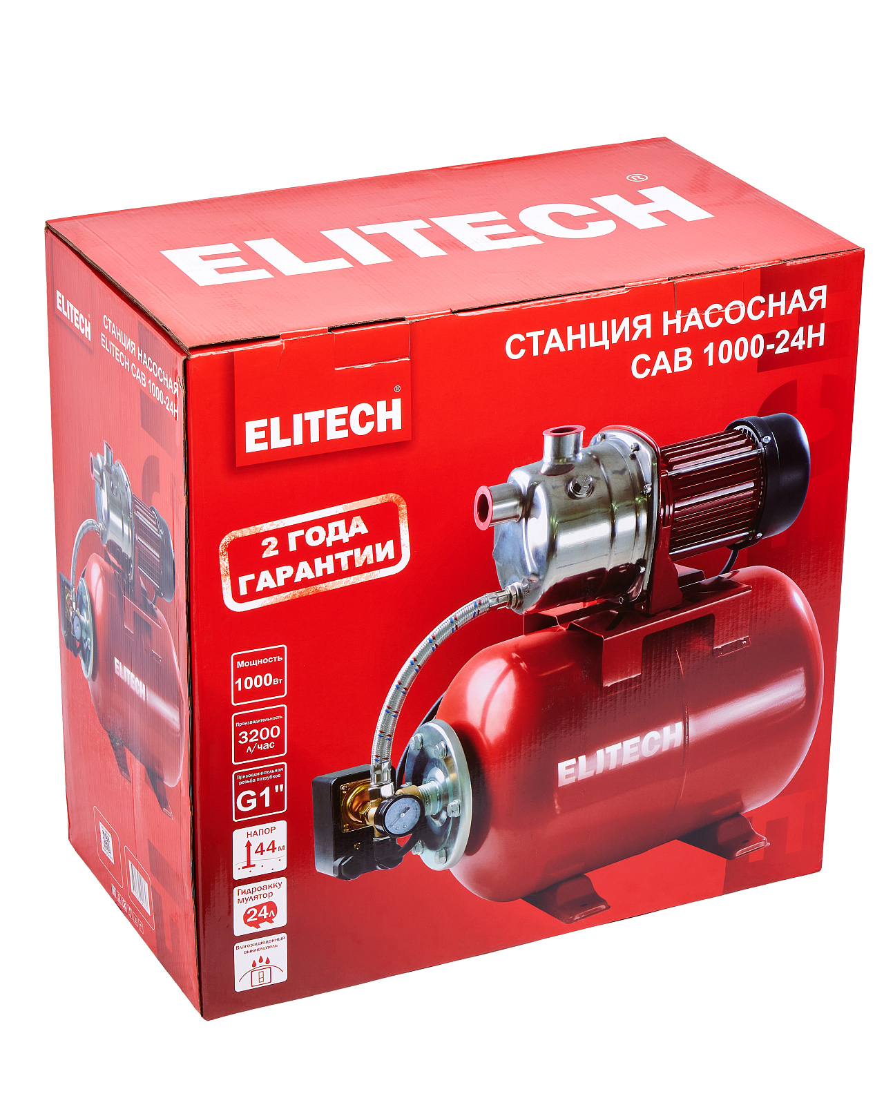 Насосная станция ELITECH САВ 1000-24Н. Предназначена для организации водоснабжения малоэтажных домов, повышения давления в системе водоснабжения (только при промежуточном включении), орошения садов и огородов, подачи чистой пресной воды в промышленности и сельском хозяйстве. Забор воды может осуществляться из колодцев, открытых водоемов и других источников, с глубины не более 8 м. При этом максимальная температура воды не должна превышать 35°С. Насосная станция не предназначена для подачи воды, содержащей абразивные, длинноволокнистые и химические составляющие. Насосную станцию нельзя использовать для подачи хлорсодержащей воды, например в плавательные бассейны.