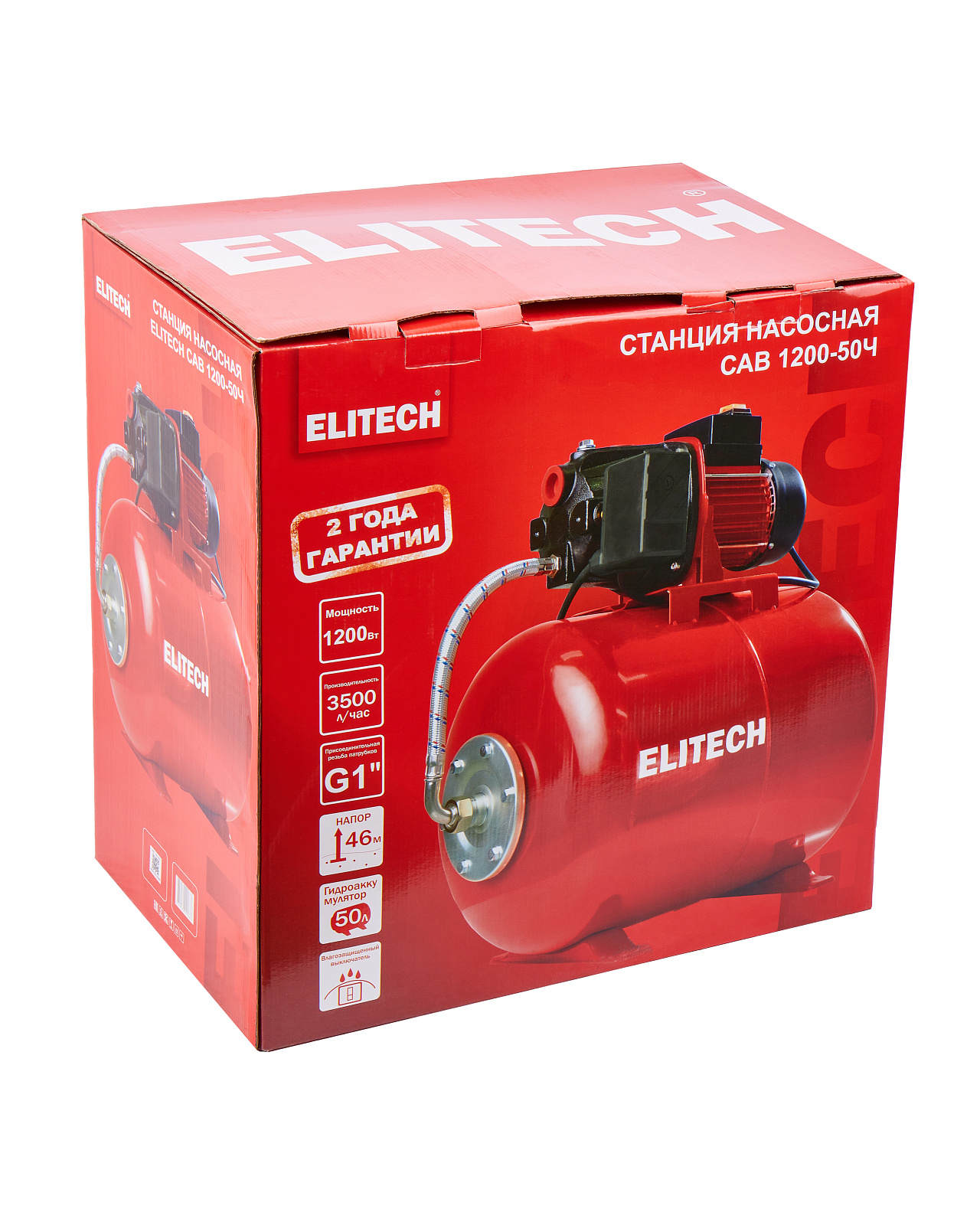 Насосная станция ELITECH САВ 1200-50Ч. Предназначена для организации водоснабжения малоэтажных домов, повышения давления в системе водоснабжения (только при промежуточном включении), орошения садов и огородов, подачи чистой пресной воды в промышленности и сельском хозяйстве. Забор воды может осуществляться из колодцев, открытых водоемов и других источников, с глубины не более 8 м. При этом максимальная температура воды не должна превышать 35°С. Насосная станция не предназначена для подачи воды, содержащей абразивные, длинноволокнистые и химические составляющие. Насосную станцию нельзя использовать для подачи хлорсодержащей воды, например в плавательные бассейны.
