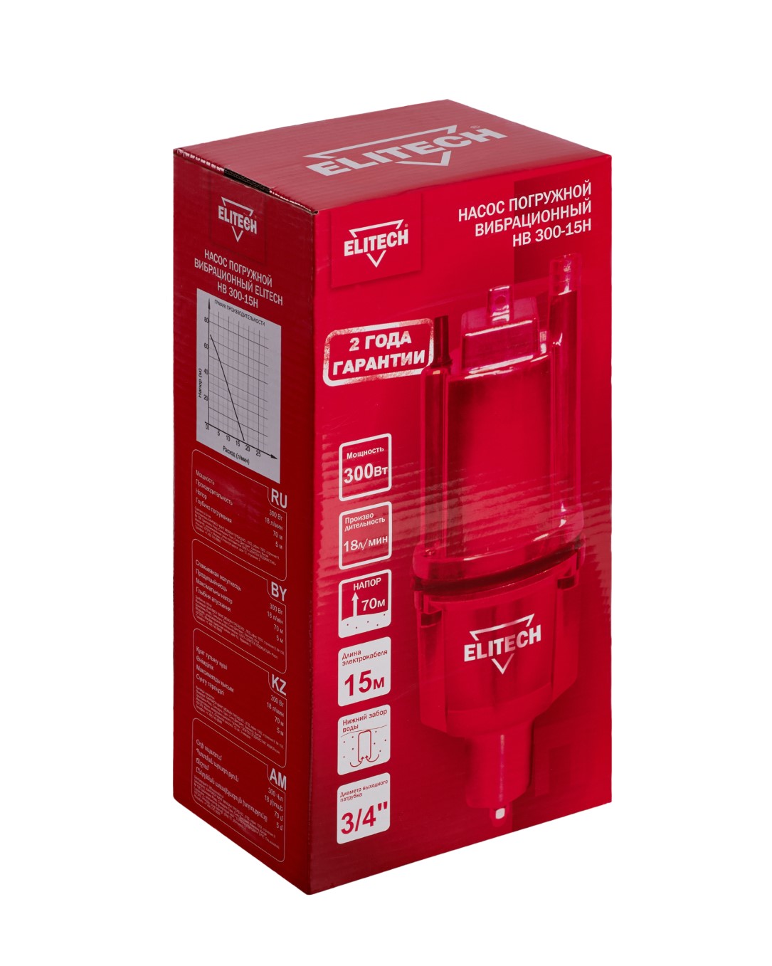 Насос погружной вибрационный ELITECH ВН 300-15Н. Мощностью 300 Вт развивает максимальное эксплуатационное давление в 7 бар. Предназначен для подачи чистой пресной воды, с максимальной температурой не более 35°С, из колодцев, открытых водоемов и других источников. Насос оптимален для подачи воды из глубоких колодцев и скважин, в которых уровень воды стоит ниже 8 метров относительно поверхности земли. Максимальный напор насоса составляет 70 м. Насос не предназначен для перекачивания едких, легковоспламеняемых и взрывчатых веществ (нефть, бензин, растворители), а также масел, жиров и сточных вод.