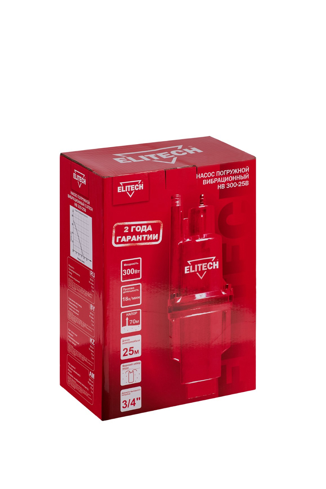 ELITECH <p> Насос погружной вибрационный ELITECH ВН 300-25В. Мощностью 300 Вт развивает максимальное эксплуатационное давление в 7 бар. Предназначен для подачи чистой пресной воды, с максимальной температурой не более 35°С, из колодцев, открытых водоемов и других источников. Насос оптимален для подачи воды из глубоких колодцев и скважин, в которых уровень воды стоит ниже 8 метров относительно поверхности земли. Максимальный напор насоса составляет 70 м. Насос не предназначен для перекачивания едких, легковоспламеняемых и взрывчатых веществ (нефть, бензин, растворители), а также масел, жиров и сточных вод.</p>