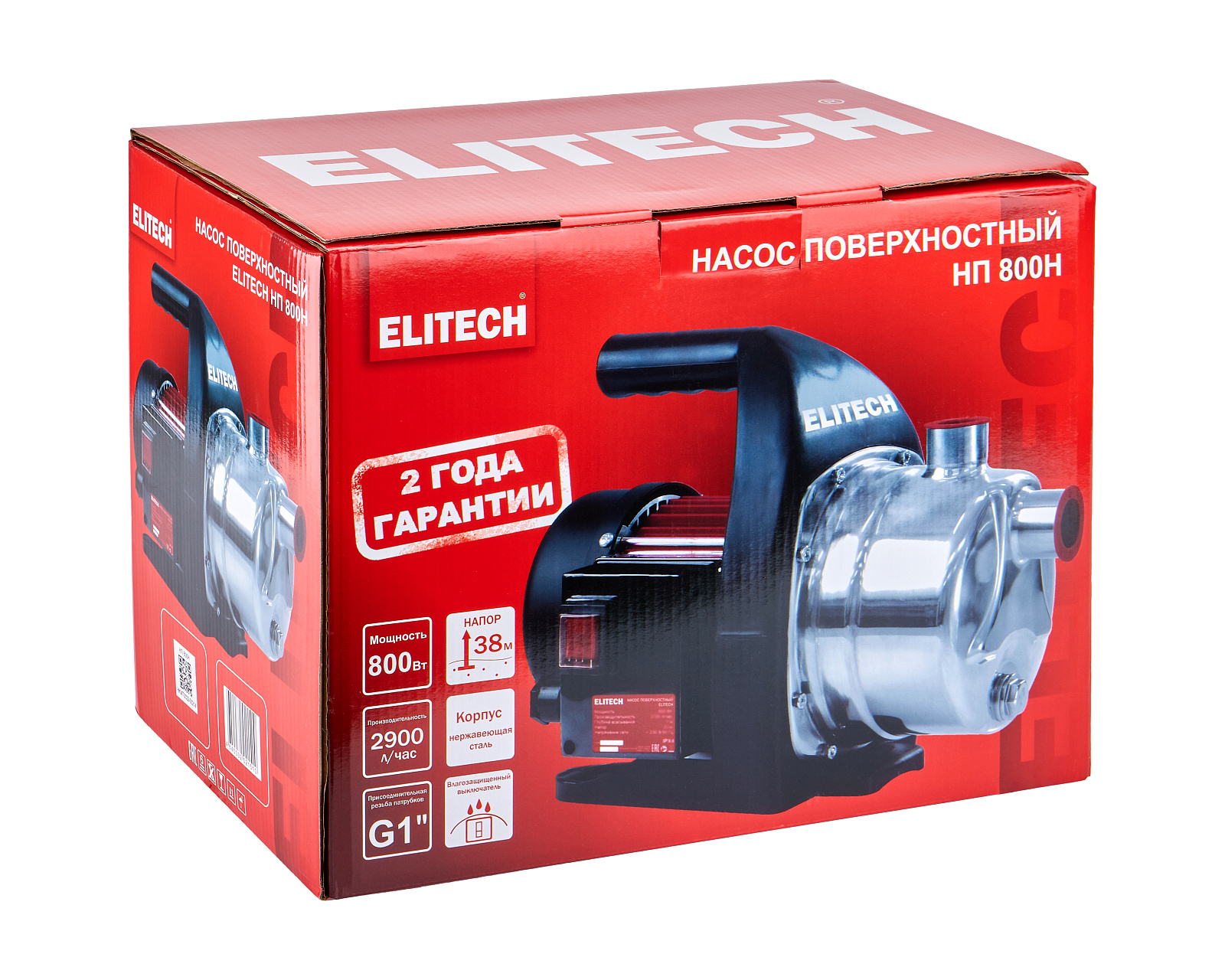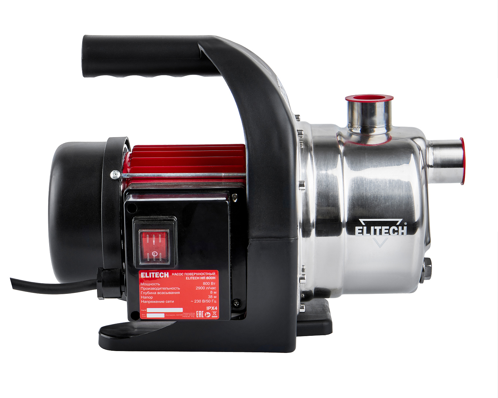 <p> ELITECH </p><p>Насос поверхностный ELITECH НП 800Н (или садовый). Предназначен для подачи чистой пресной воды. Может применяться для полива садов и огородов, подъема и перекачивания воды в бытовых условиях, осушения резервуаров. Забор воды может осуществляться из колодцев, открытых водоемов и других источников, с глубины не более 8 м. При этом максимальная температура воды не должна превышать 35°С. Насос не предназначен для подачи воды, содержащей абразивные, длинноволокнистые и химические составляющие. Насос нельзя использовать для перекачивания хлорсодержащей воды, например в плавательных бассейнах.</p> <p>Насос поверхностный (или садовый) в корпусе из нержавеющей стали мощностью 800 Вт и производительностью 48 л/мин с напором 38 м предназначен для подачи чистой пресной воды. Может применяться для полива садов и огородов, подъема и перекачивания воды в бытовых условиях, осушения резервуаров. Забор воды может осуществляться из колодцев, открытых водоемов и других источников, с глубины не более 8 м. При этом максимальная температура воды не должна превышать 35°С. Насос не предназначен для подачи воды, содержащей абразивные, длинноволокнистые и химические составляющие. Насос нельзя использовать для перекачивания хлорсодержащей воды, например в плавательных бассейнах.</p><p> </p>