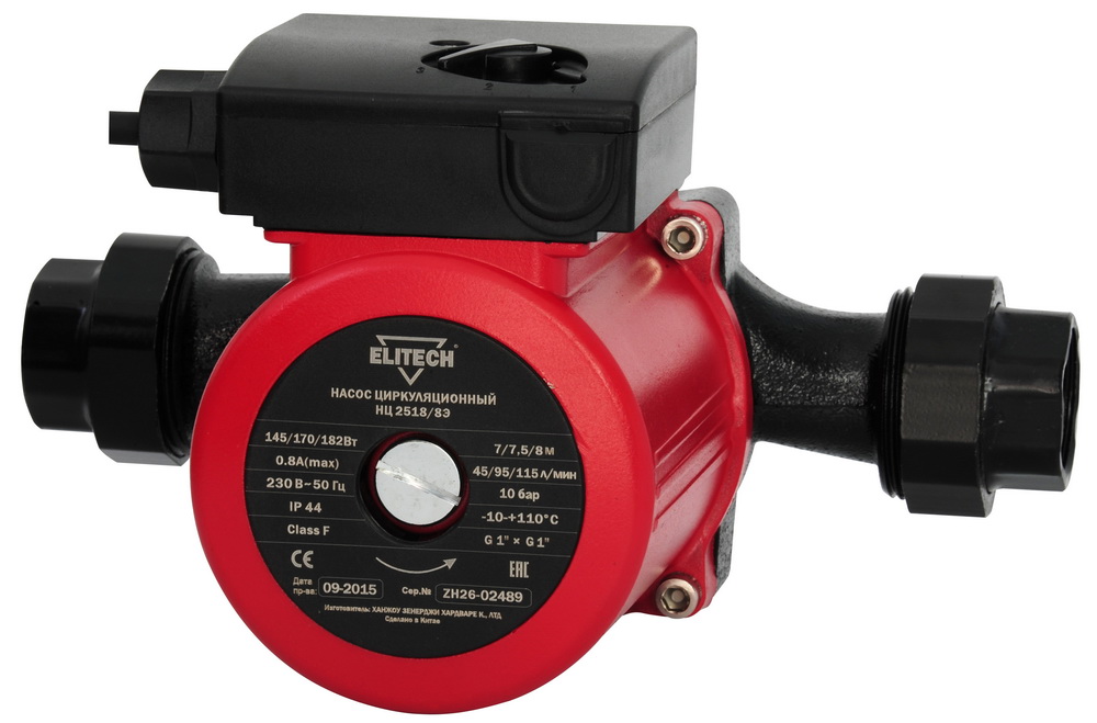 Циркуляционный насос Elitech НЦ 2518/8Э применяется для организации циркуляции горячей и холодной воды в системах отопления, горячего водоснабжения, охлаждения и кондиционирования. Имеет 3 режима работы (производительности и напора). Максимальный напор (режимы I / II / III) - 7 / 7,5 / 8 метров. Производительность 45 / 95 / 115 литров в минуту. Потребляемая мощность 145 / 170 / 182 Вт. Диапазон рабочих температур от -10 до +110 градусов цельсия. Монтажный размер 180 мм. Подсоединительный размер G1'. Чугунный корпус. Низкий уровень шума - 35 дБ. В комплекте монтажные фланцы с внутренный резьбой G1'. Потребляемая мощность, Вт 145/170/182 Производительность, л/мин 45/95/115 Максимальный напор, м 7/7,5/8 Кол-во режимов работы 3 Максимальное давление, бар 10 Температура перекачиваемой жидкости, С° от -10 до +110 Монтажное расстояние, мм 180 Посадка, дюйм G1'' Максимальный диаметр частиц в воде, мм 0,02 Длинна питающего кабеля, м 1,3 Степень защиты IP44 Материал корпуса чугун Напряжение сети, В/Гц 220/50 Габаритные размеры, мм 210х165х149 Масса, кг 4,6