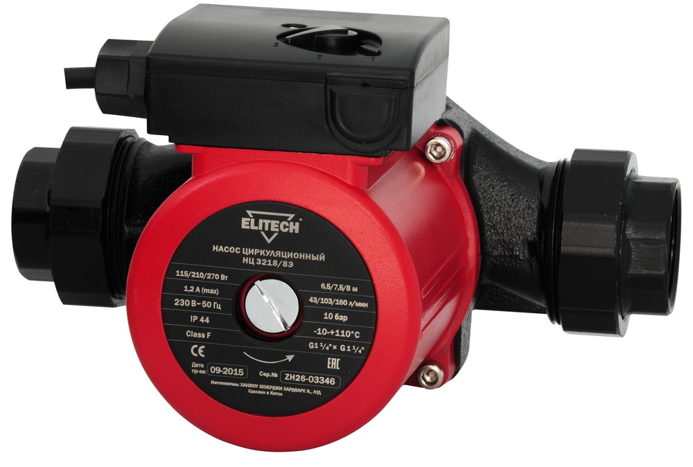 Циркуляционный насос НЦ 3218/8Э Потребляемая мощность, Вт 115/210/270 Производительность, л/мин 43/103/160 Максимальный напор, м 6,5/7.5/8 Кол-во режимов работы 3 Максимальное давление, бар 10 Температура перекачиваемой жидкости, С° от -10 до +110 Монтажное расстояние, мм 180 Посадка, дюйм G1 1/4' Максимальный диаметр частиц в воде, мм 0,02 Длинна питающего кабеля, м 1,3 Степень защиты IP44 Материал корпуса чугун Напряжение сети, В/Гц 220/50 Габаритные размеры, мм 210х178х149 Масса, кг 5,5