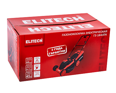 Газонокосилка электрическая ELITECH ГЭ 1844ТК (E1601.025.00). Предназначена для кошения газонной травы на приусадебных и дачных участках, в парках и аналогичных территориях с газонным травяным покрытием, ровным, без ям и кочек, и без посторонних предметов. Предпочтительные условия для эксплуатации газонокосилки: температура окружающего воздуха от +5 °С до +35°С и относительная влажность воздуха не более 80%. Запрещается использовать газонокосилку не по назначению.