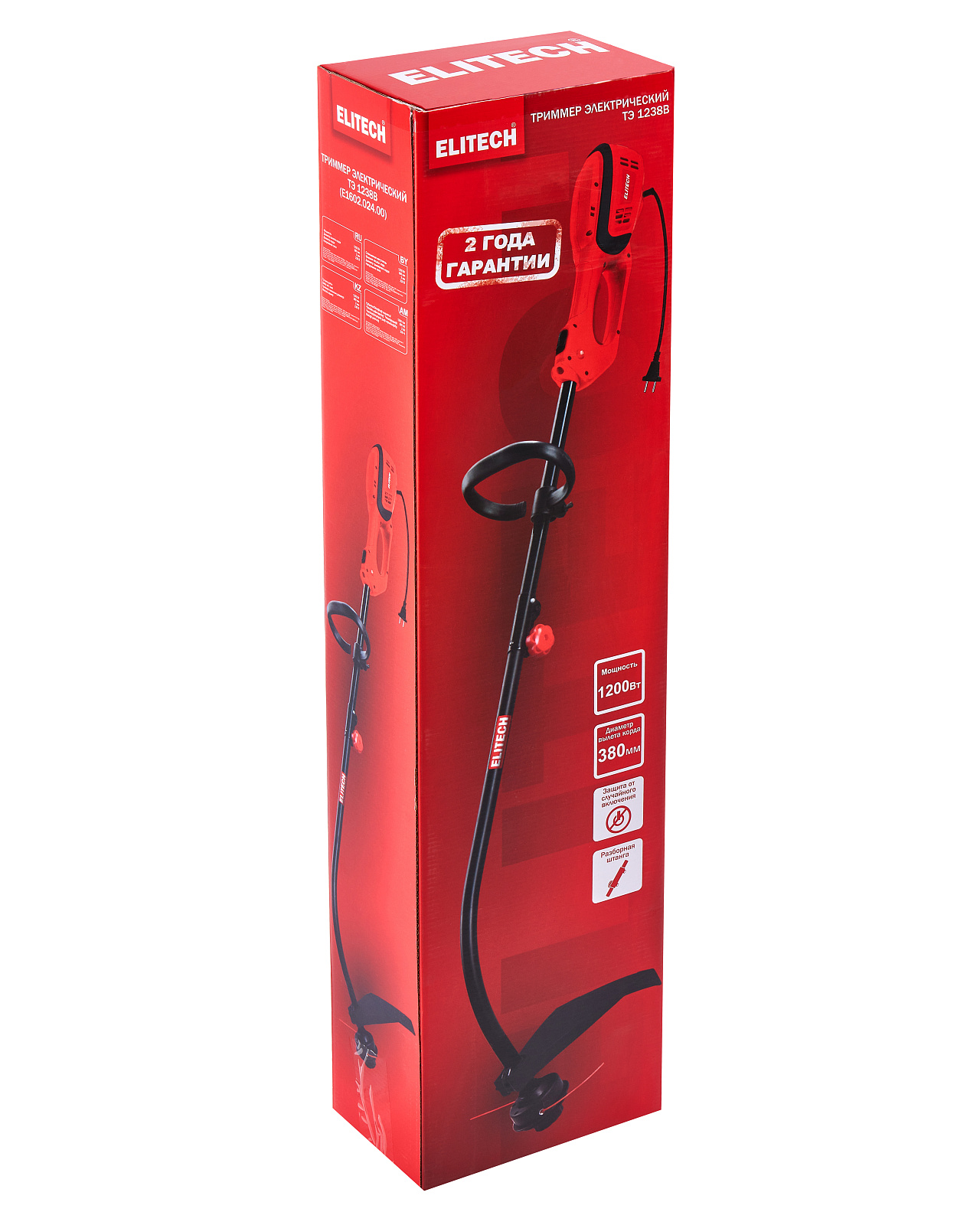 Триммер электрический ELITECH ТЭ 1238В (E1602.024.00).Предназначен для кошения вновь вырастающей и не переросшей травы на подготовленных участках с травяным покрытием, приусадебных и придомовых территориях.