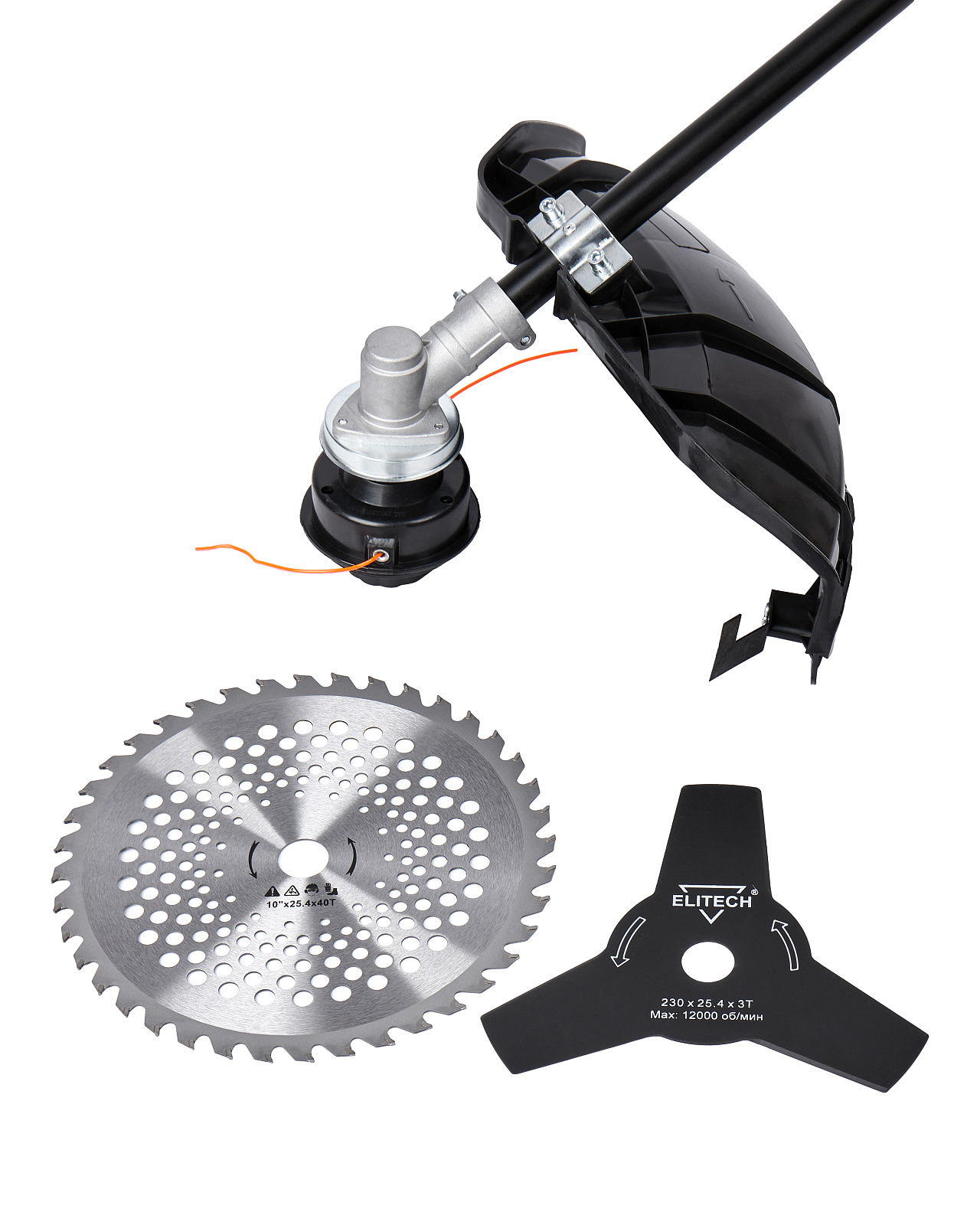Электрический триммер с прямой разборной штангой и петлевой ручкой мощностью 1200 Вт, с шириной захвата кордом (леской) 400 мм, ножом 230 мм и диском 255 мм, предназначен для кошения вновь вырастающей и не переросшей травы на подготовленных участках с травяным покрытием, приусадебных и придомовых территориях. Триммер рекомендуется эксплуатировать при температуре окружающей среды от +5°С до +35°С и относительной влажности воздуха не более 80%.