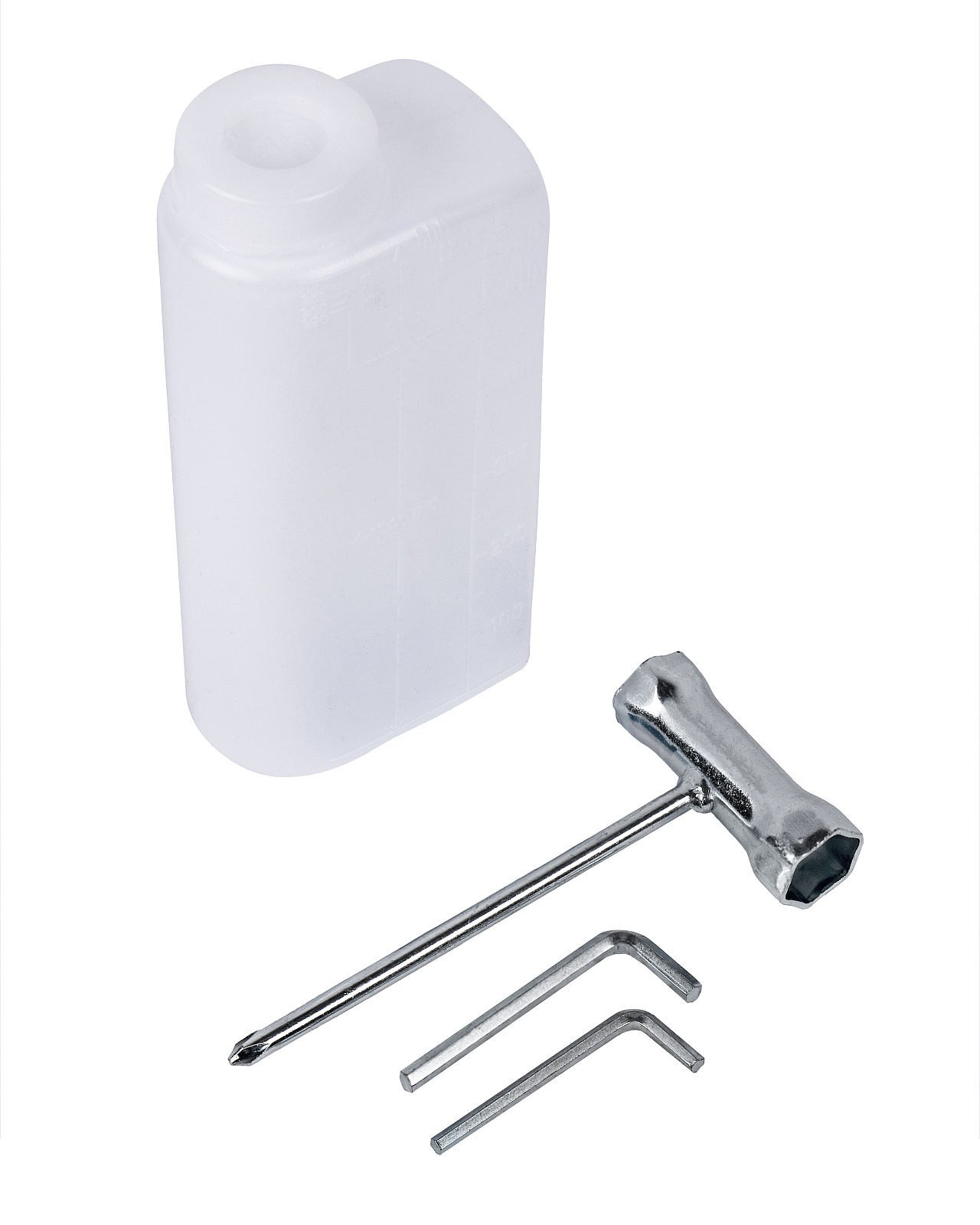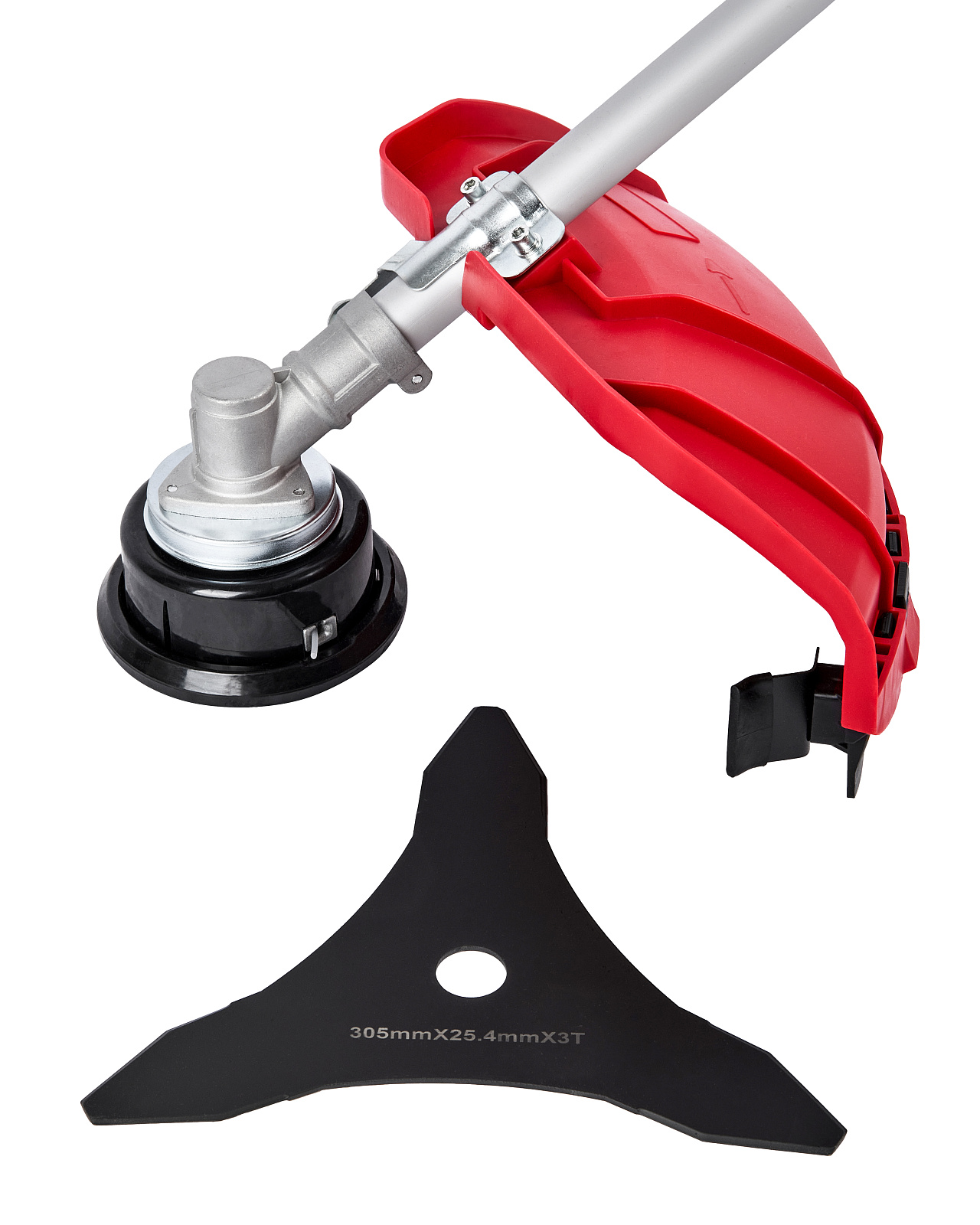 Бензиновый триммер для кошения травы леской (кордом 420 мм) и ножом (305 мм) с двухтактным двигателем мощностью 2 л.с. (1,5 кВт) выполнен с неразборной штангой.