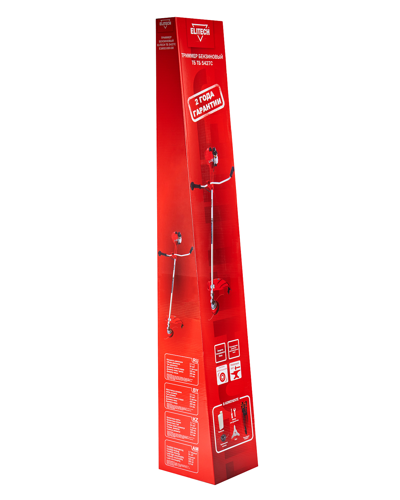 Бензиновый триммер ELITECH ТБ 5427С (E1602.020.00). Предназначен для обработки приусадебных участков, городских и частных газонов, декоративной обработки клумб, а так же способен скашивать более жесткую растительность (бурьян, небольшие кустарники, камыш и др.), в том числе и в труднодоступных местах (вдоль заборов, вокруг деревьев и т.д.).