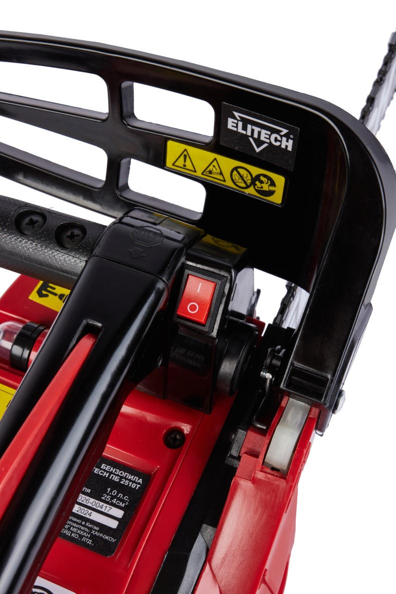 Пила цепная бензиновая ELITECH ПБ 2510Т (E1611.009.00). Предназначена для пиления древесины вне помещений, на открытом воздухе и применяется для валки деревьев, обрезки сучьев, раскряжевки ствола на сортименты, пиления дров. Цепная пила оснащена двухтактным двигателем внутреннего сгорания, работающим на смеси бензина и 2-тактного масла, приводящим в движение пильную цепь, двигающуюся по направляющей шине.