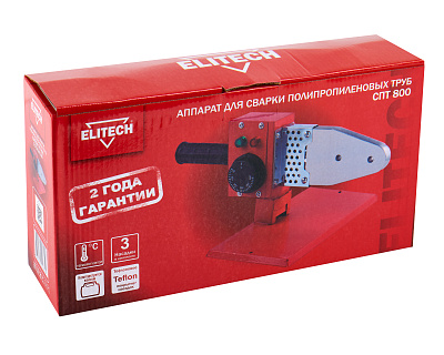 СПТ 800 (E1704.001.00) - Аппарат для сварки полипропиленовых труб Область применения: Аппарат СПТ 800 предназначен для сварки полипропиленовых труб. Сварка полипропиленовых труб является неотъемлемой частью при монтаже водопровода в квартирах, частных домах и других зданиях. При этом используется специальный аппарат для сварки, а именно паяльники пластиковых труб. Он надежно соединяет конструкции без опасности возникновения протечек в месте шва. Сварка выполняется стык в стык, то есть не требует использования дополнительных деталей (переходников и т.п.). Данный аппарат используется как в быту домашними мастерами, так и профессионалами. Преимущества: • УНИВЕРСАЛЬНОСТЬ – Аппарат предназначен для сварки полипропиленовых труб всех стандартных диаметров от 20мм до 63мм. • НАДЕЖНОСТЬ – Насадки имеют специальное покрытие, обеспечивающее долгий срок службы. • БЕЗОПАСТНОСТЬ – При перерывах в работе, прибор можно установить на специальную подставку. • КОНТРОЛЬ РАБОТЫ – На аппарате имеются индикаторы подключения к сети и контроля температуры. • КОНТРОЛЬ ТЕМПЕРАТУРЫ – Аппарат оснащен встроенным термостатом, который позволяет установить и поддерживать заданную температуру от 50°С до 300°С • УДОБСТВО – Аппарат в комплекте с набором насадок и инструментом поставляется в компактном металлическом кейсе. Технические характеристики: Напряжение сети: 220±10% В Максимальная потребляемая мощность: 800 Вт Диаметры насадок: 20/25/32/40/50/63 мм Рабочая температура: 50-300 °С Время нагрева: <15 мин Длина сетевого кабеля: 1.2 мм Масса с кейсом: 3.0 кг Комплектация: Металлический кейс; подставка; насадки 6шт.; болт 2шт; шестигранный ключ; отвертка.