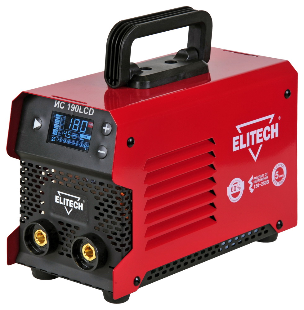 Сварочный инвертор ELITECH ИС 190LCD предназначен для осуществления ручной дуговой сварки штучными плавящимися электродами (MMA), а также имеет возможность аргонодуговой сварки (TIG) на постоянном токе неплавящимся вольфрамовым электродом в среде защитного инертного газа – аргона (сварка только углеродистых и нержавеющих сталей).