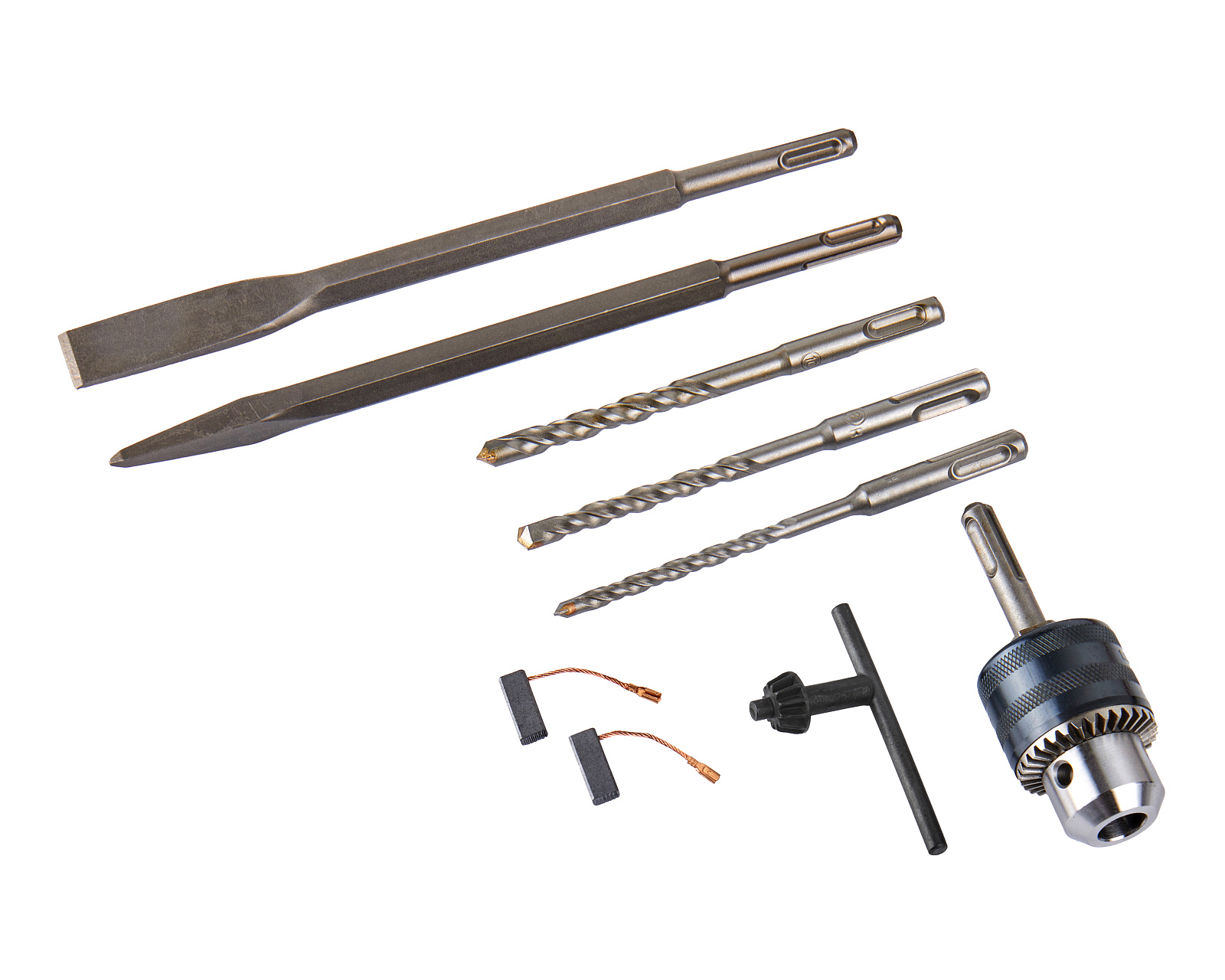 Перфоратор мощностью 900 Вт со скоростью вращения 0-1200 об/мин и частотой ударов 0-5500 уд/мин, предназначен для бурения отверстий, штробления пазов, разрушения твердых материалов, таких как кирпич, бетон, природный и искусственный камень и т.п. В качестве рабочих насадок в перфораторе могут использоваться бур, пика, зубило, коронка. Рабочие насадки для перфоратора имеют специальный хвостовик SDS-Plus.