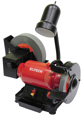 Точило ELITECH CT 300MC оснащено защитными экранами, предотвращающими попадания искр в глаза оператора, и регулируемой лампой освещения рабочей зоны. Станок имеет небольшой вес - 11.2 кг. и электродвигатель мощностью - 300 Вт. Предусмотрены металлические втулки для фиксации точильного круга.