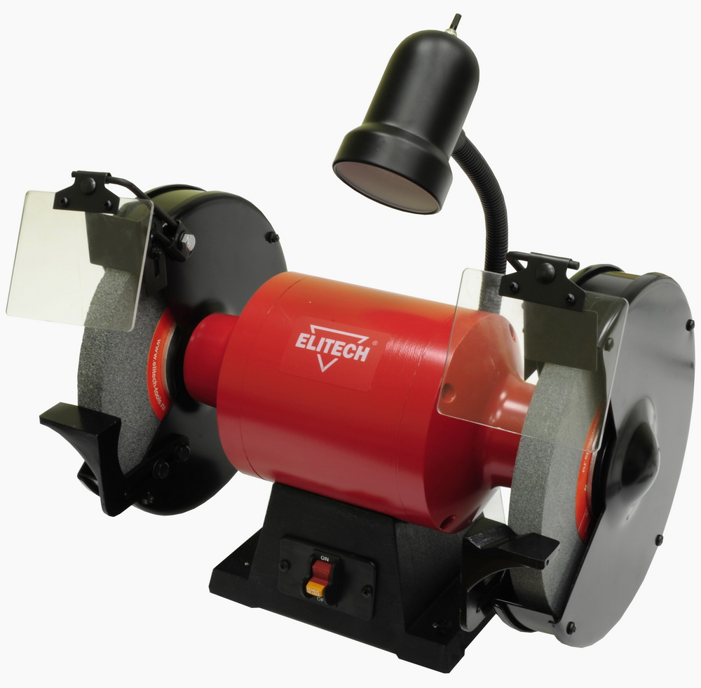 Точило ELITECH CT 900C оснащено регулируемой лампой для подсветки рабочей зоны. Для надежной фиксации круга предусмотрены металлические втулки. Регулируемые упоры повышают точность заточки. Защитный экран увеличивает безопасность работы со станком.