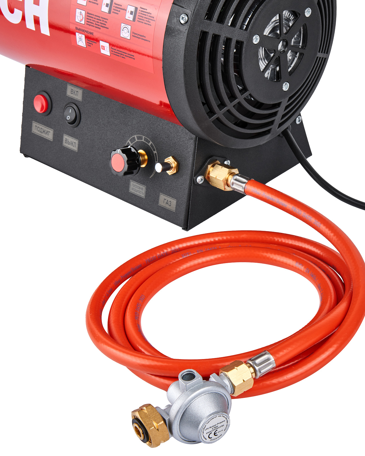 Газовая тепловая пушка ТП 15ГБ предназначена для обогрева хорошо вентилируемых помещений, объемом до 400м.куб. В качестве топлива используется балонный газ пропан/бутан, который сгорает в камере сгорания, выделяя тепло. Принудительным потоком воздуха от электрического вентилятора, работающего от сети питания 230В, тепло от сгорания топлива выбрасывается в отапливаемое помещение. Исполнение тепловой пушки – переносное, рабочее положение – установка на полу. Пушка оснащена защитой от затухания пламени. Когда пламя горелки тухнет, автоматический клапан перекрывает подачу газа.
