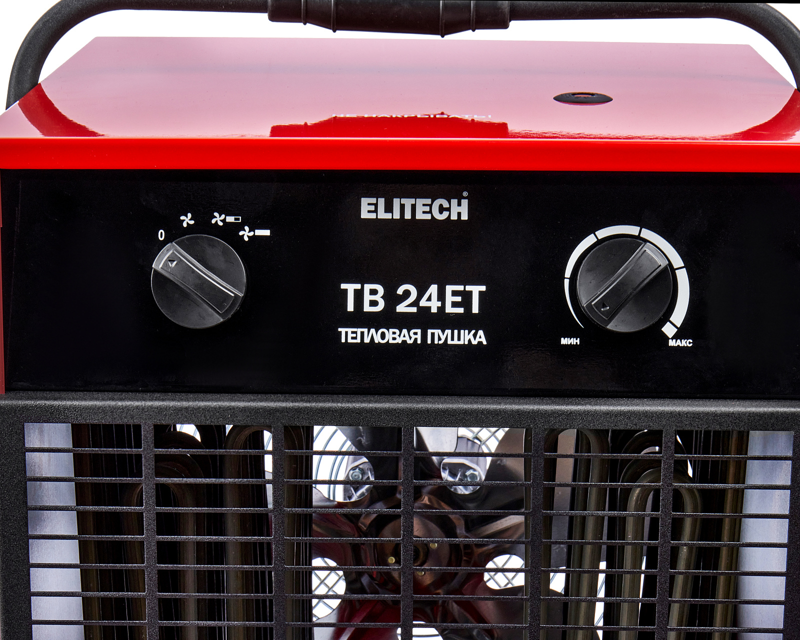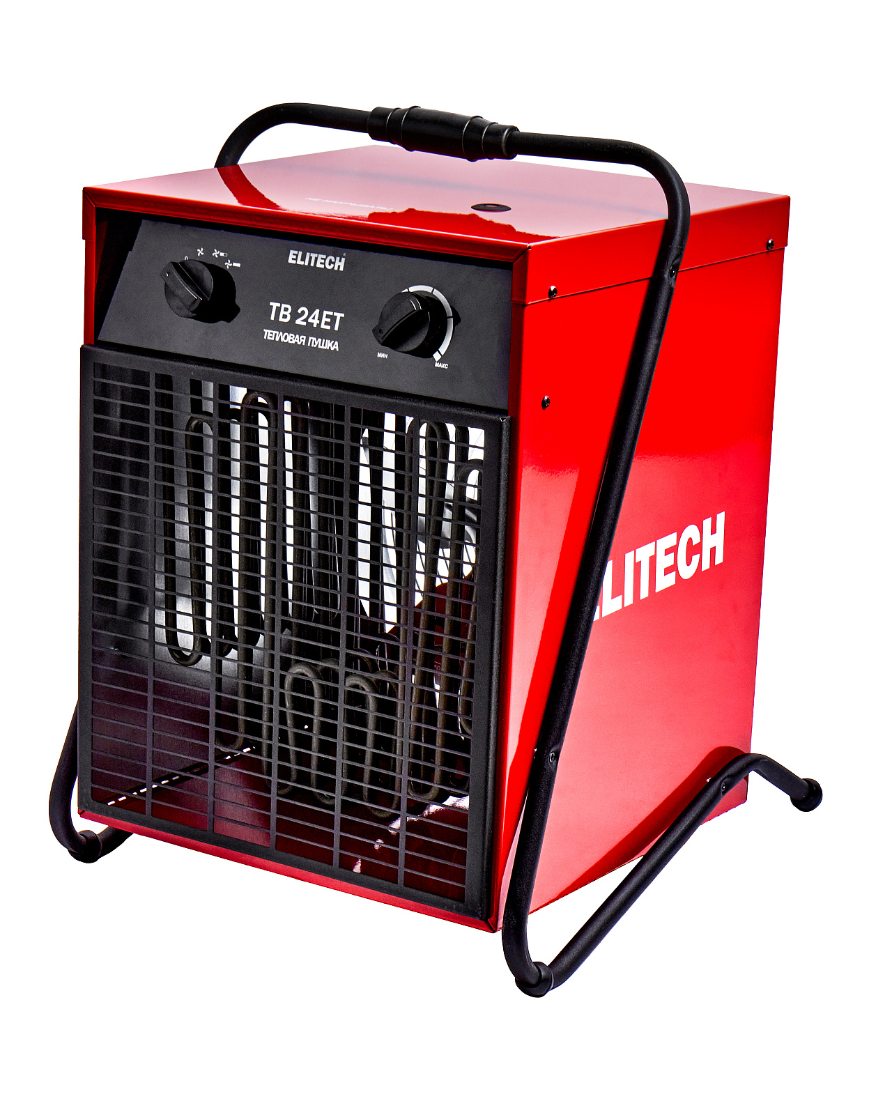 ELITECH Электрическая тепловая пушка ELITECH ТВ 24ЕТ. Предназначена для обогрева жилых и нежилых помещений, а также для просушки поверхностей и предметов.Предназначена для обогрева помещения площадью до 90м2.