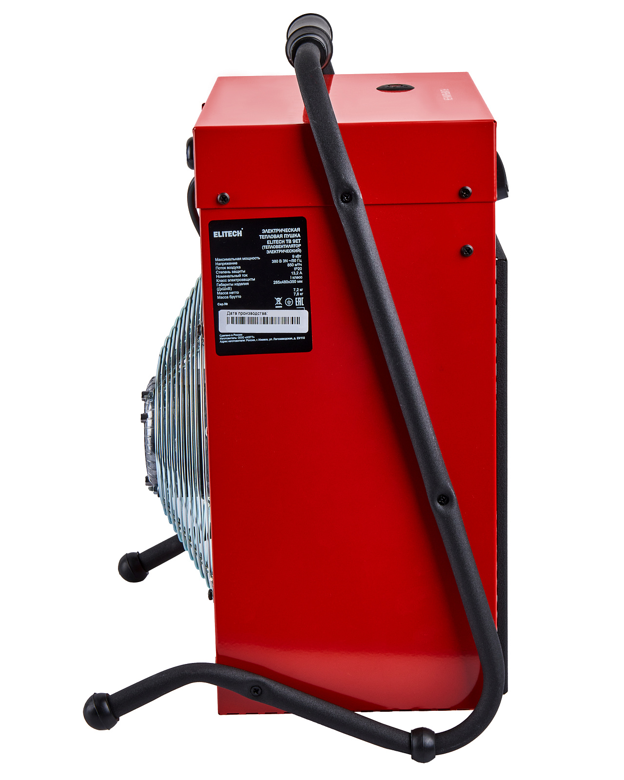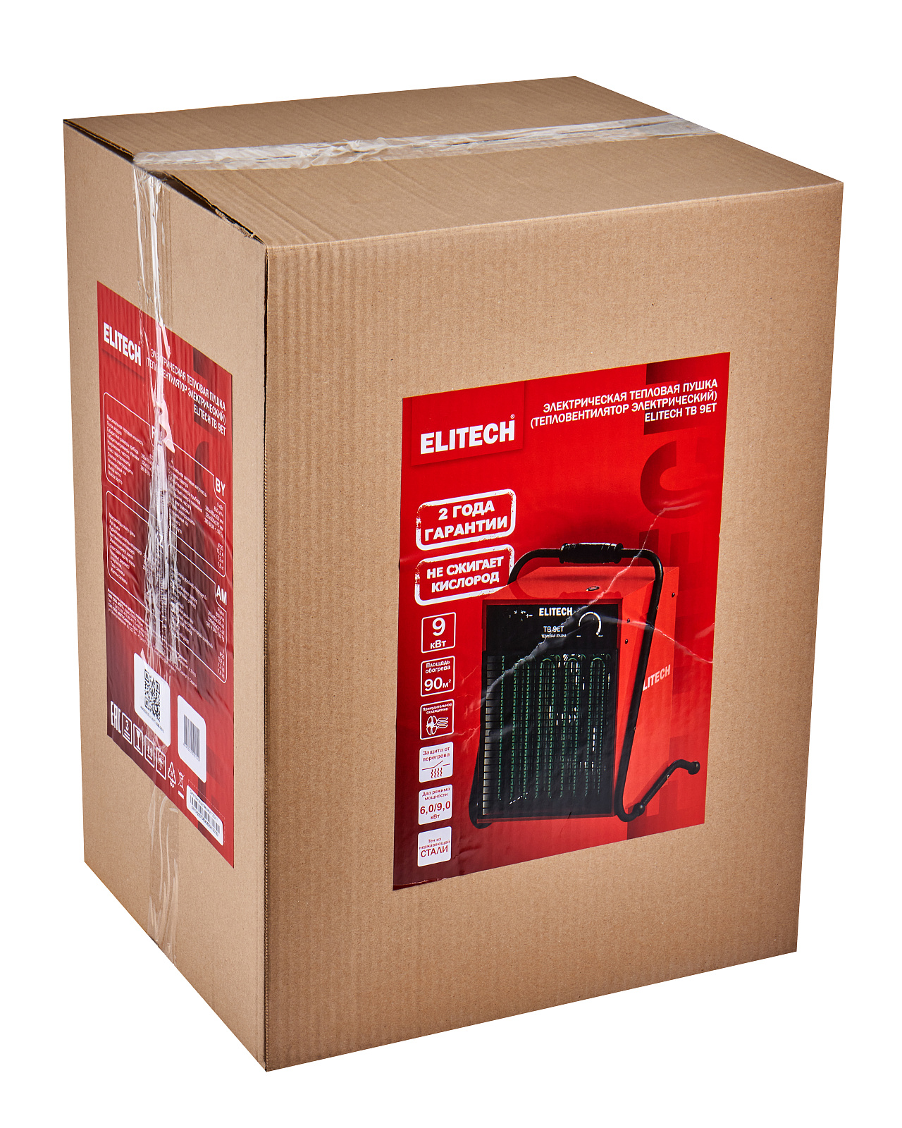 ELITECH Электрическая тепловая пушка ELITECH ТВ 9ЕТ. Предназначена для обогрева жилых и нежилых помещений, а также для просушки поверхностей и предметов.Предназначена для обогрева помещения площадью до 90м2.