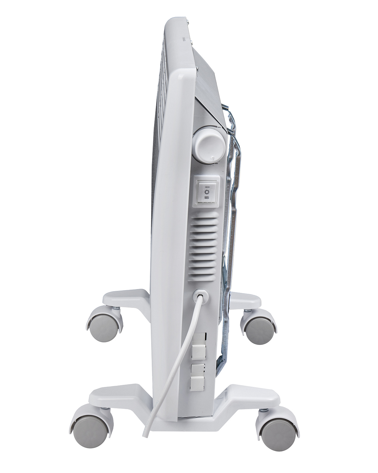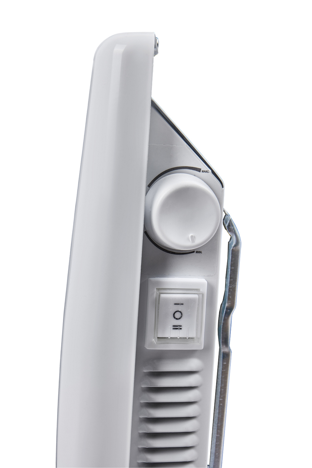 Конвектор мощностью 500/1000 Вт и оснащается электромеханическим термостатом регулирования температуры и может подвешиваться на стену или устанавливаться на пол. Запрещено использовать конвектор для сушки одежды, т.е. закрывать входные и выходные воздушные отверстия.