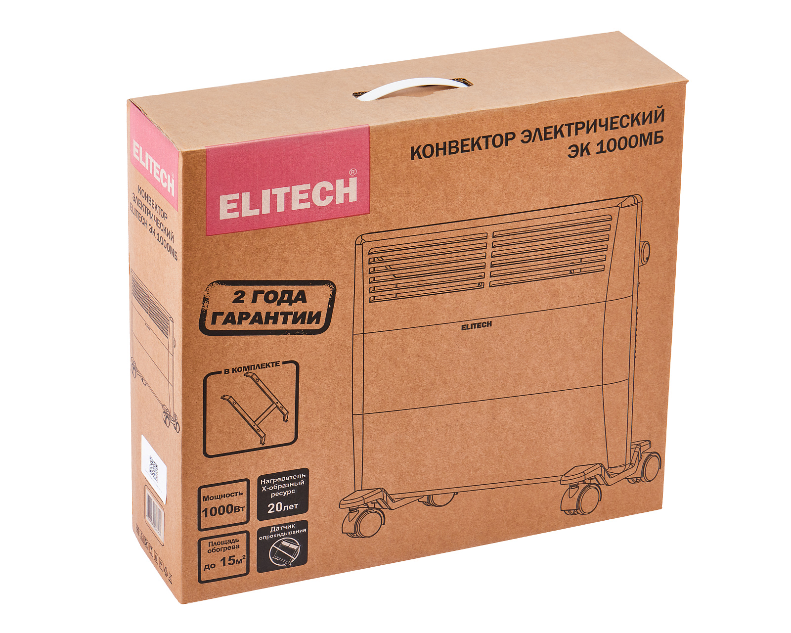 Электрический конвектор ELITECH ЭК 1000МБ. Предназначен для обогрева любых помещений площадью до 15 кв.м и автоматического поддержания в них заданной температуры.