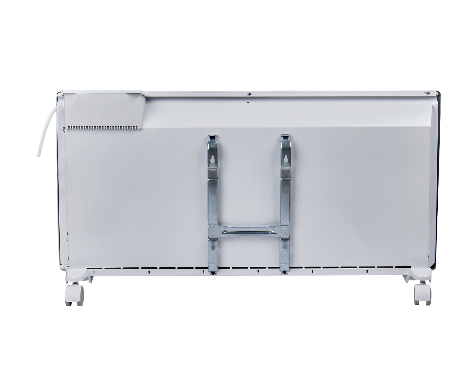 Конвектор мощностью 1000/2000 Вт и оснащается электромеханическим термостатом регулирования температуры и может подвешиваться на стену или устанавливаться на пол. Запрещено использовать конвектор для сушки одежды, т.е. закрывать входные и выходные воздушные отверстия.