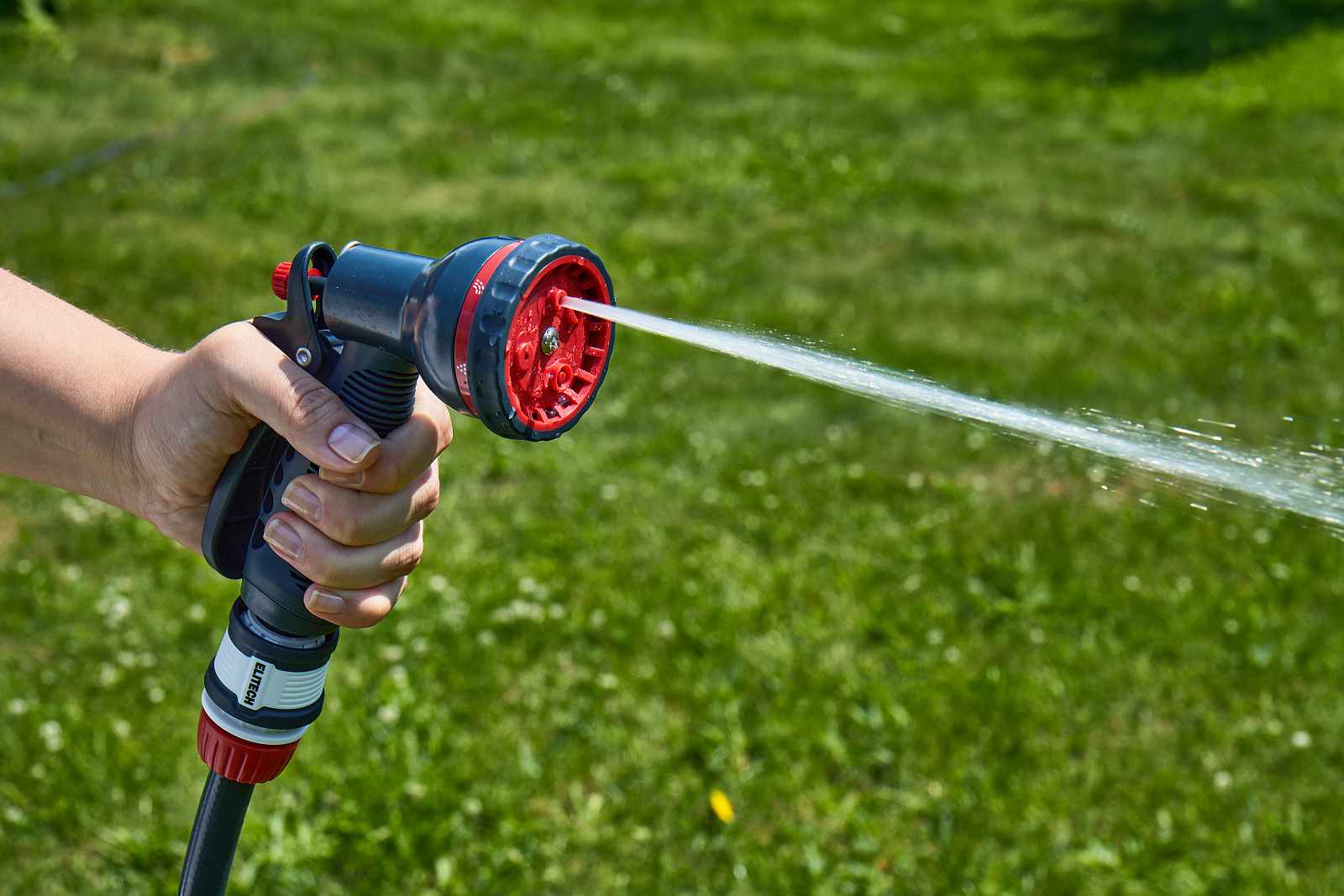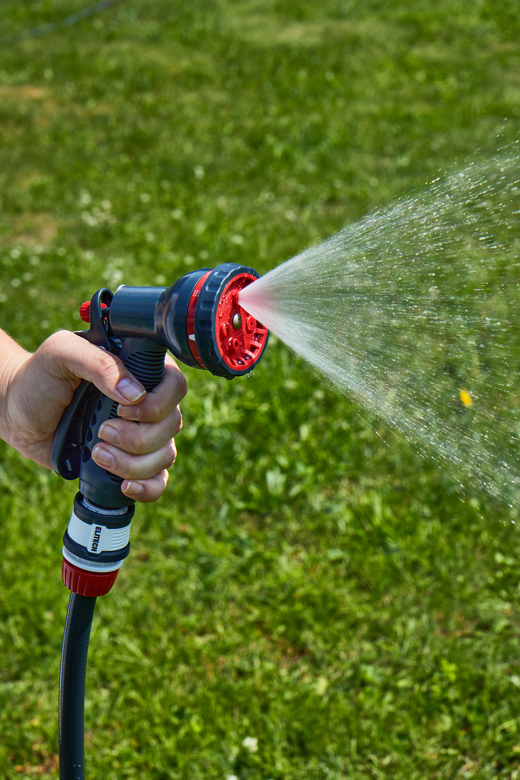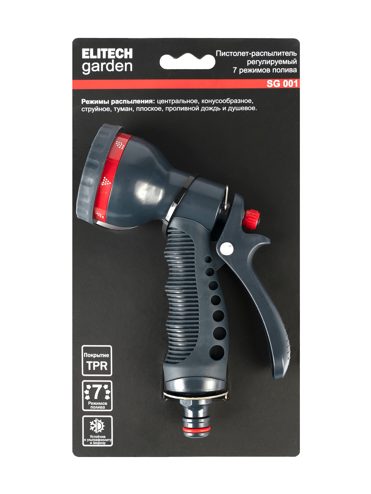 * Режимы полива: центральный, конусообразный, струйный, туман, плоский, проливной дождь и душевой. * Ручка включения/выключения потока воды сзади. * Фиксация ручки для длительного полива. * Изготовлен из высококачественного ABS пластика для длительного срока службы. * Дополнительное мягкое покрытие в области контакта с рукой делает его удобным даже при использовании мокрыми руками. * Подключается к шлангам с помощью соединителей. * Пистолет не потеряется в траве благодаря ярким красным элементам. * Совместим с базовой системой полива Elitech Garden и с продукцией других производителей.