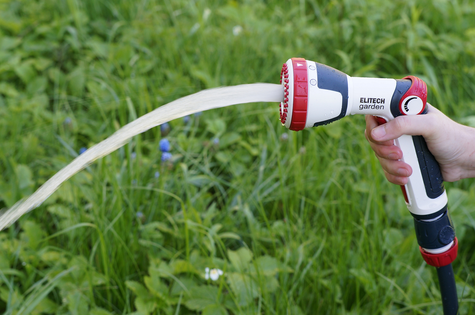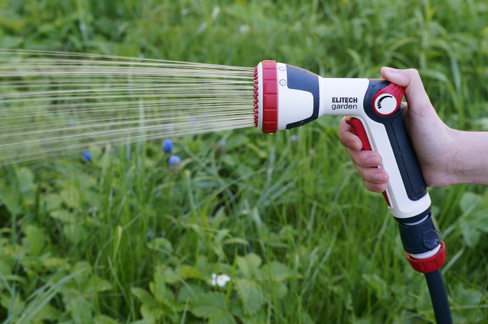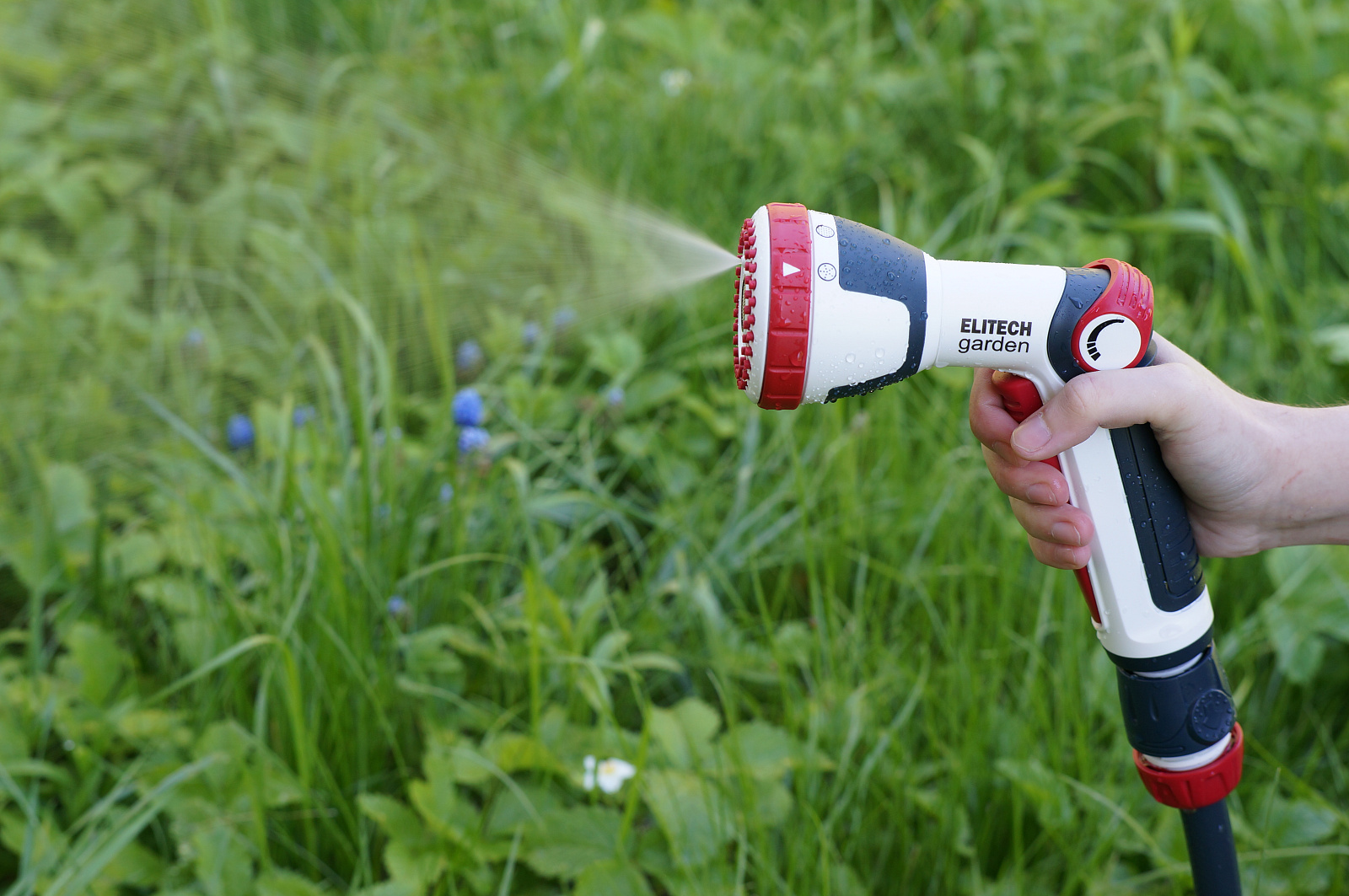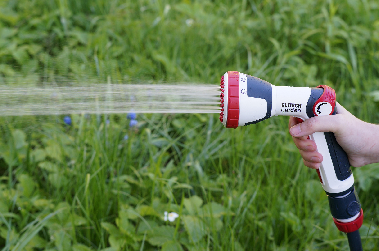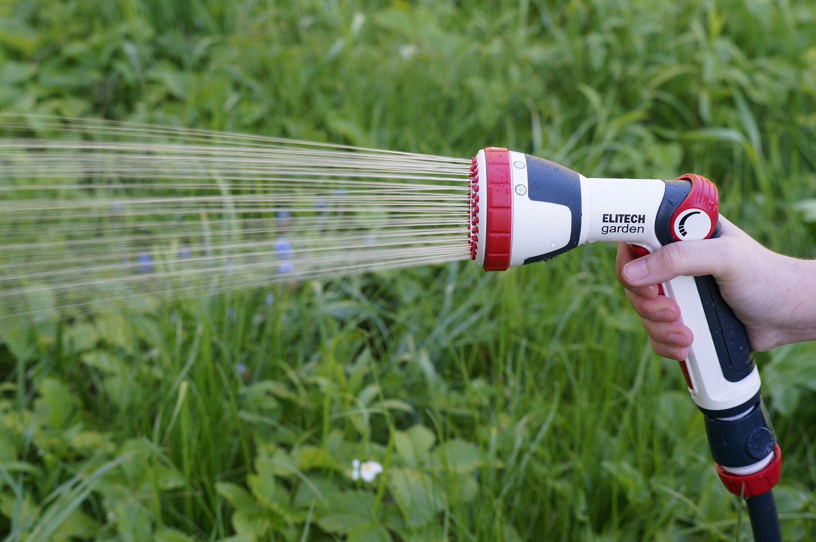 * Регулируемые 4 режима: мягкий душ, поток, обильный душ, туман. * Кнопка включения воды. * Плавная регулировка напора воды большим пальцем. * Изготовлен из высококачественного ABS пластика для длительного срока службы. * Дополнительное мягкое покрытие в области контакта с рукой делает его удобным даже при использовании мокрыми руками. * Подключается к шлангам с помощью соединителей. * Пистолет не потеряется в траве благодаря ярким красным элементам. * Совместим с базовой системой полива Elitech Garden и с продукцией других производителей.