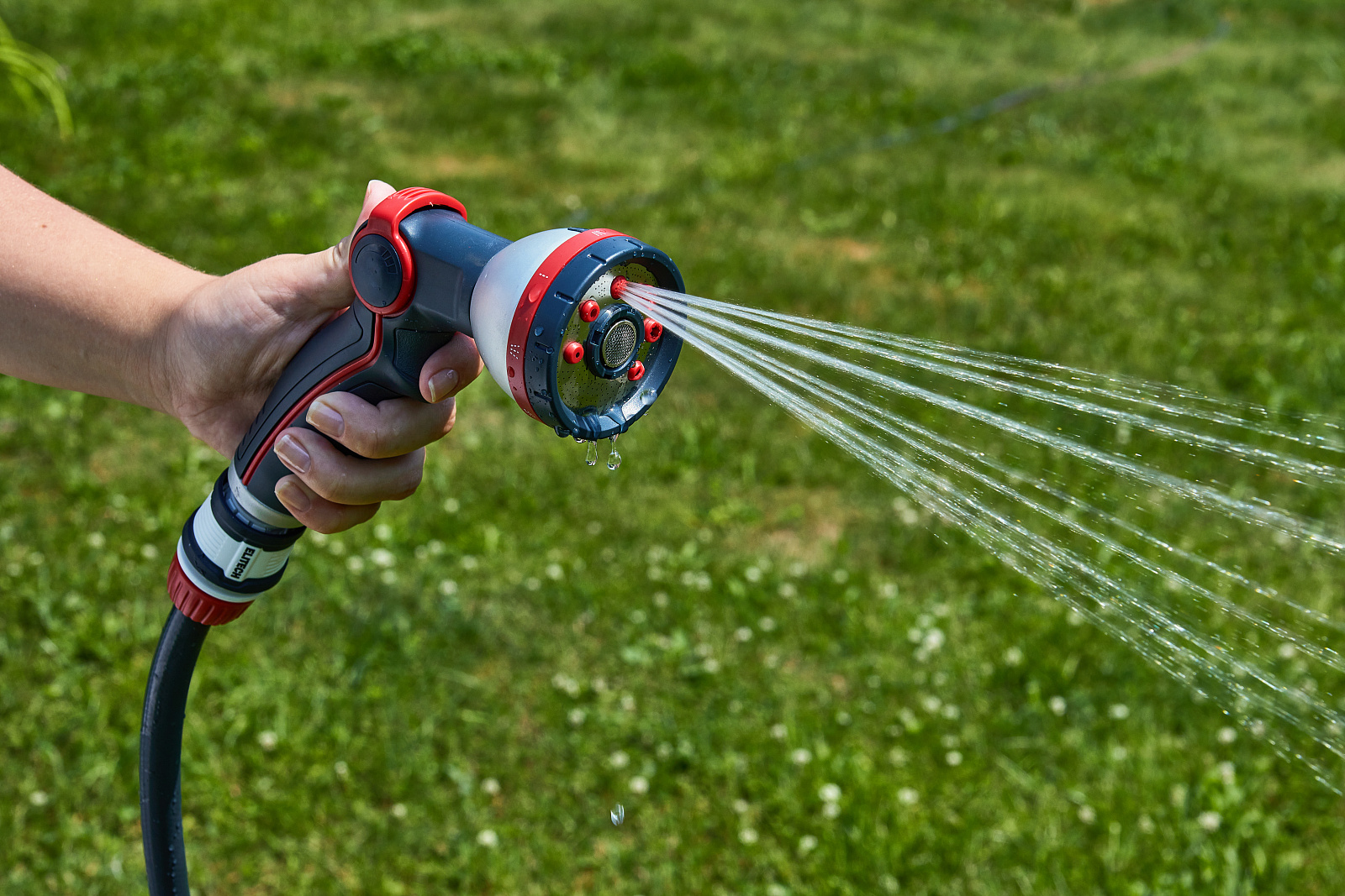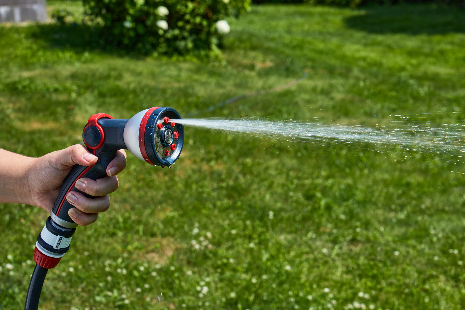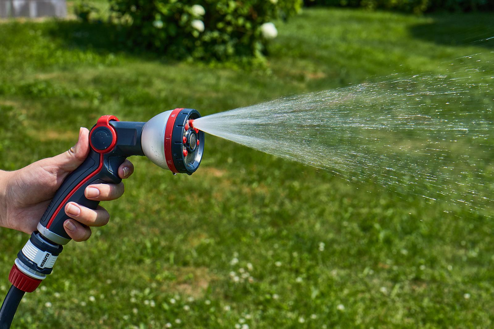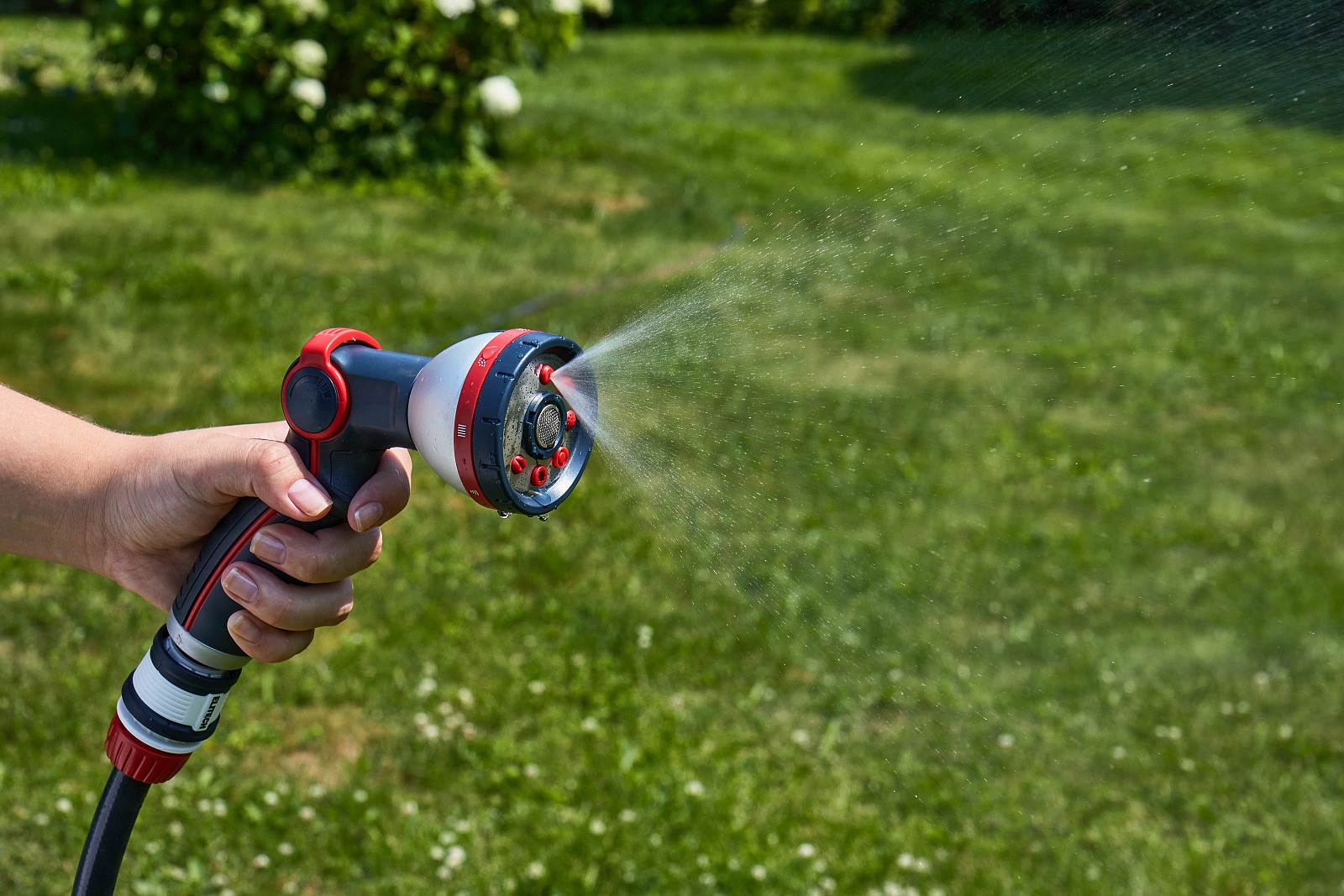 * Режимы полива: центральное, конусообразное, струйное, туман, вертикальное, плоское, полноструйное и душ. * Включение и плавная регулировка напора воды большим пальцем. * Изготовлен из высококачественного ABS пластика для длительного срока службы. * Металлические элементы корпуса делают его более ударопрочным и продлевают срок службы. * Дополнительное мягкое покрытие в области контакта с рукой делает его удобным даже при использовании мокрыми руками. * Подключается к шлангам с помощью соединителей. * Пистолет не потеряется в траве благодаря ярким красным элементам. * Совместим с базовой системой полива Elitech Garden и с продукцией других производителей.