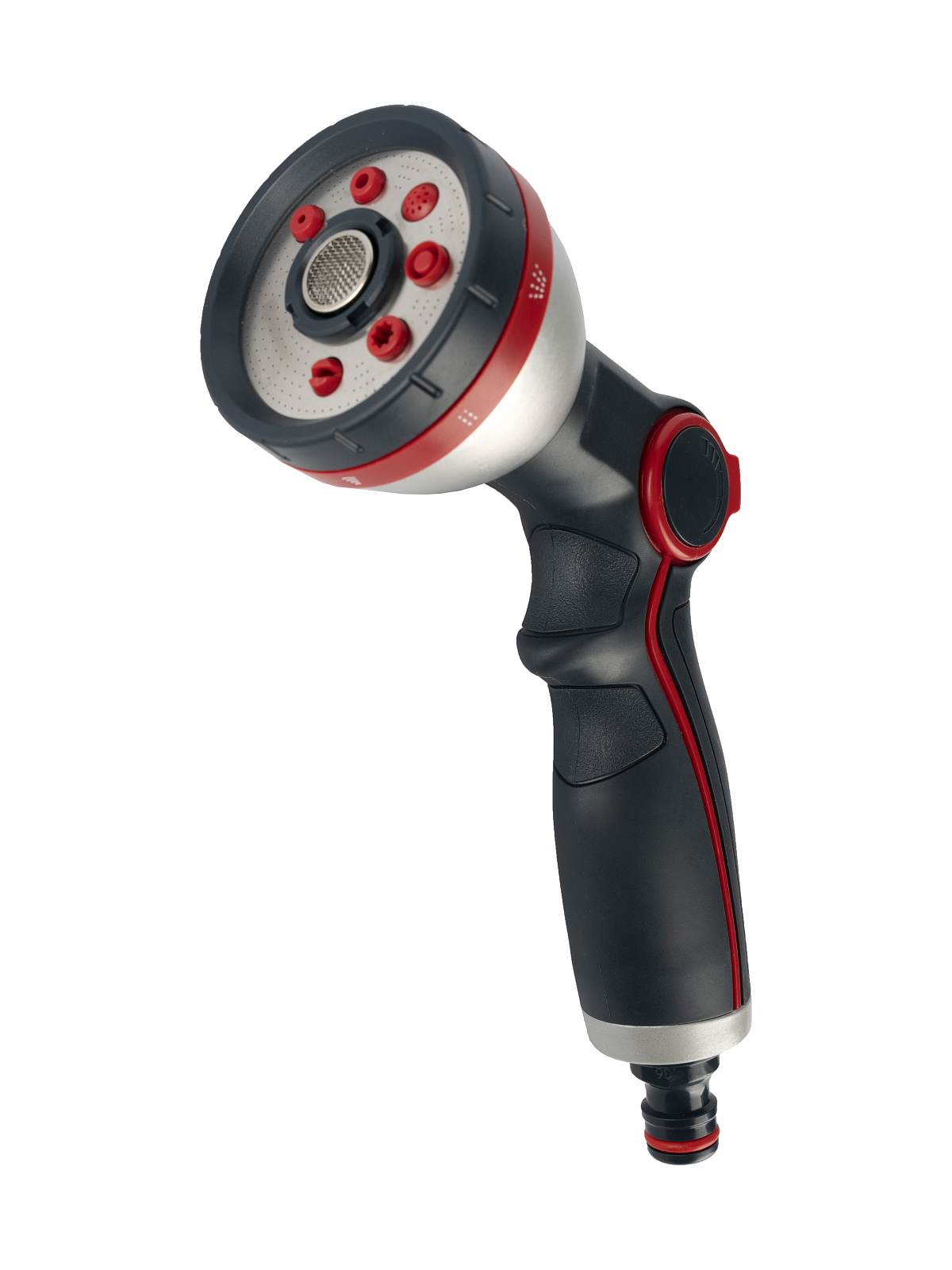 Восемь легко настраиваемых режимов распыления: центральное, конусообразное, струйное, туманное, вертикальное, плоское, полное и душевое. Покрытие корпуса TPR мягкое на ощупь, устойчивое к нагреву и холоду, а также к скольжению, удобное в использовании; Задний спусковой крючок Пластиковый переходник Материал: ABS, TPR, металл