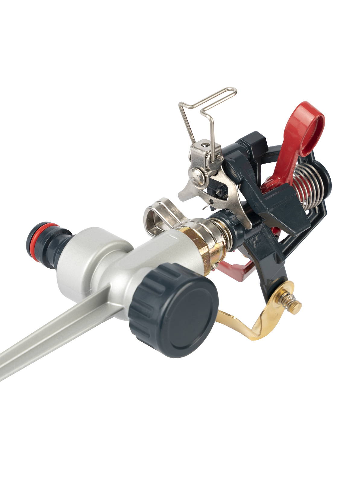Металлический импульсный разбрызгиватель с цинковым наконечником Размер: 27,8x11,8x6 см; Вес: 312 г; С пластиковым фитингом; Диапазон распыления до 24 метров в диаметре (4 бар) Работа по кругу или частично по кругу Материал: Цинк, сталь, латунь Рабочее давление: 4 бар