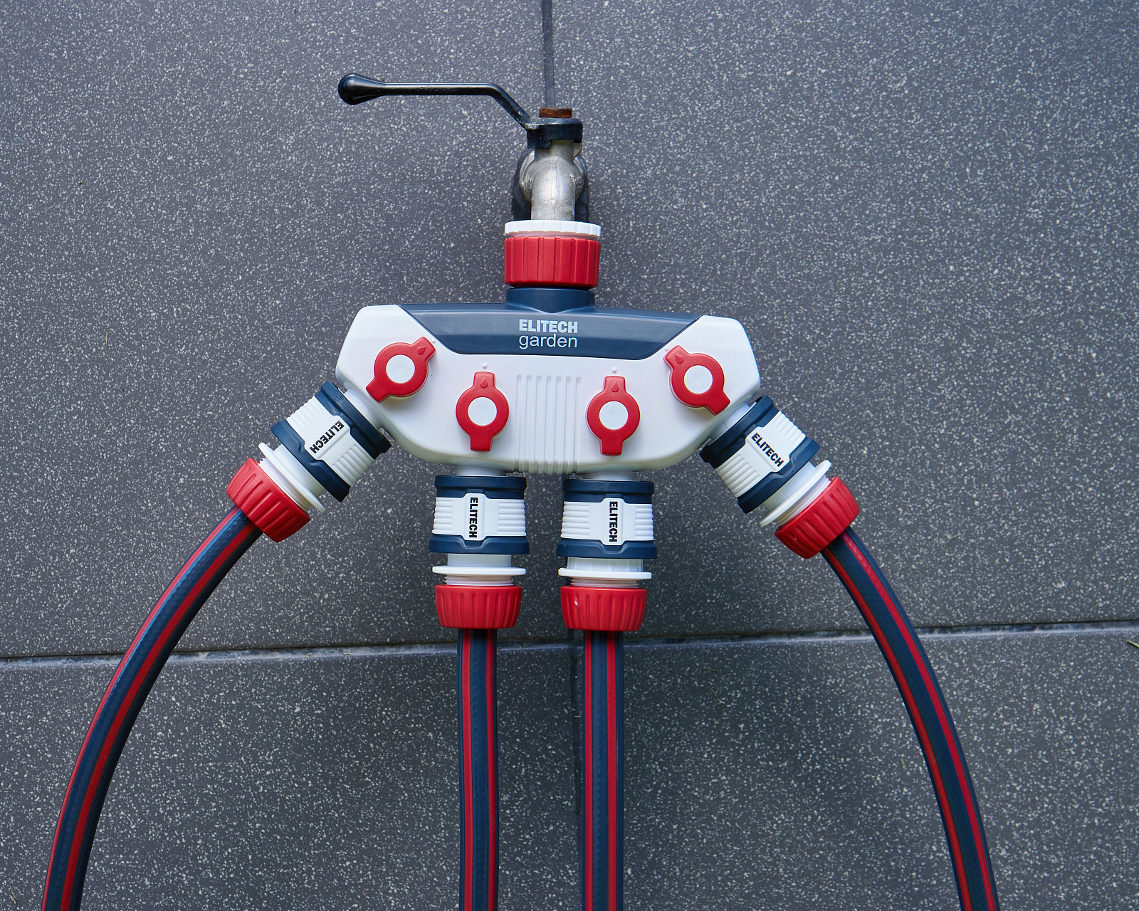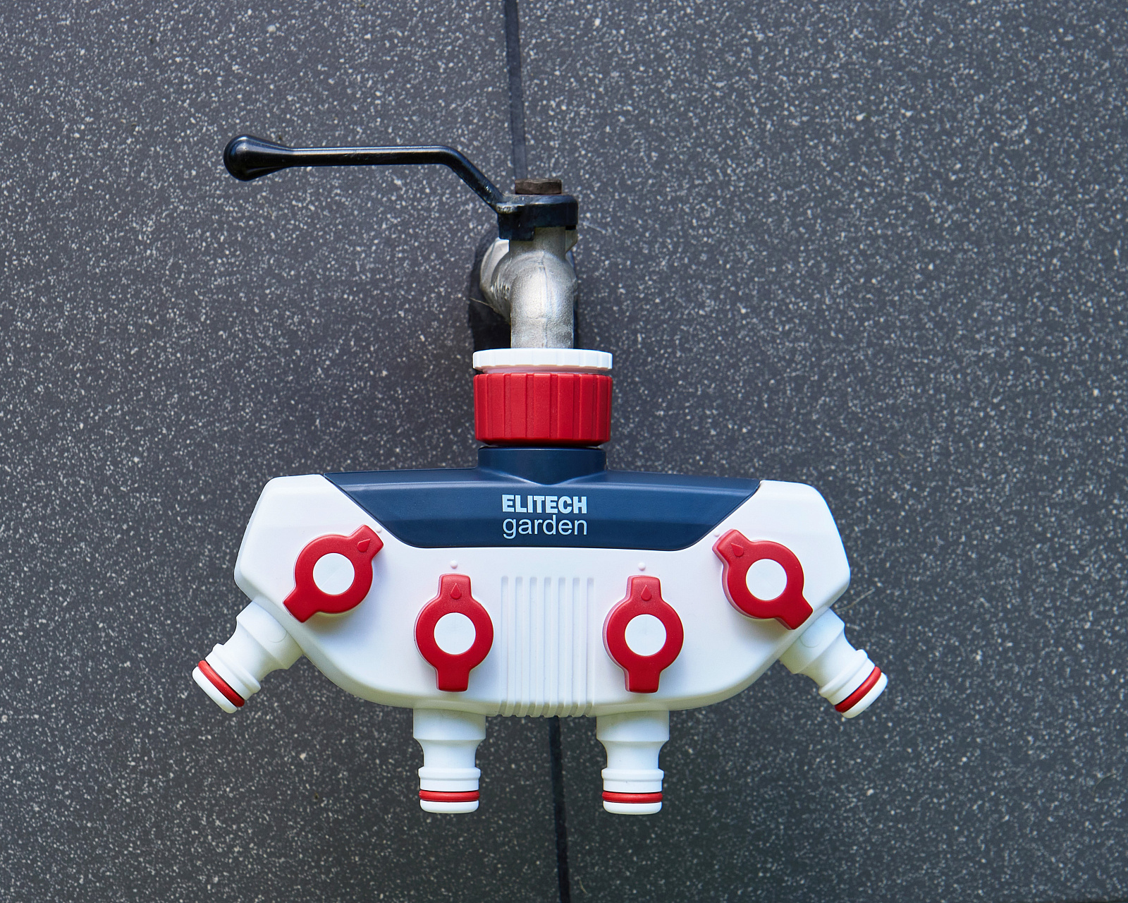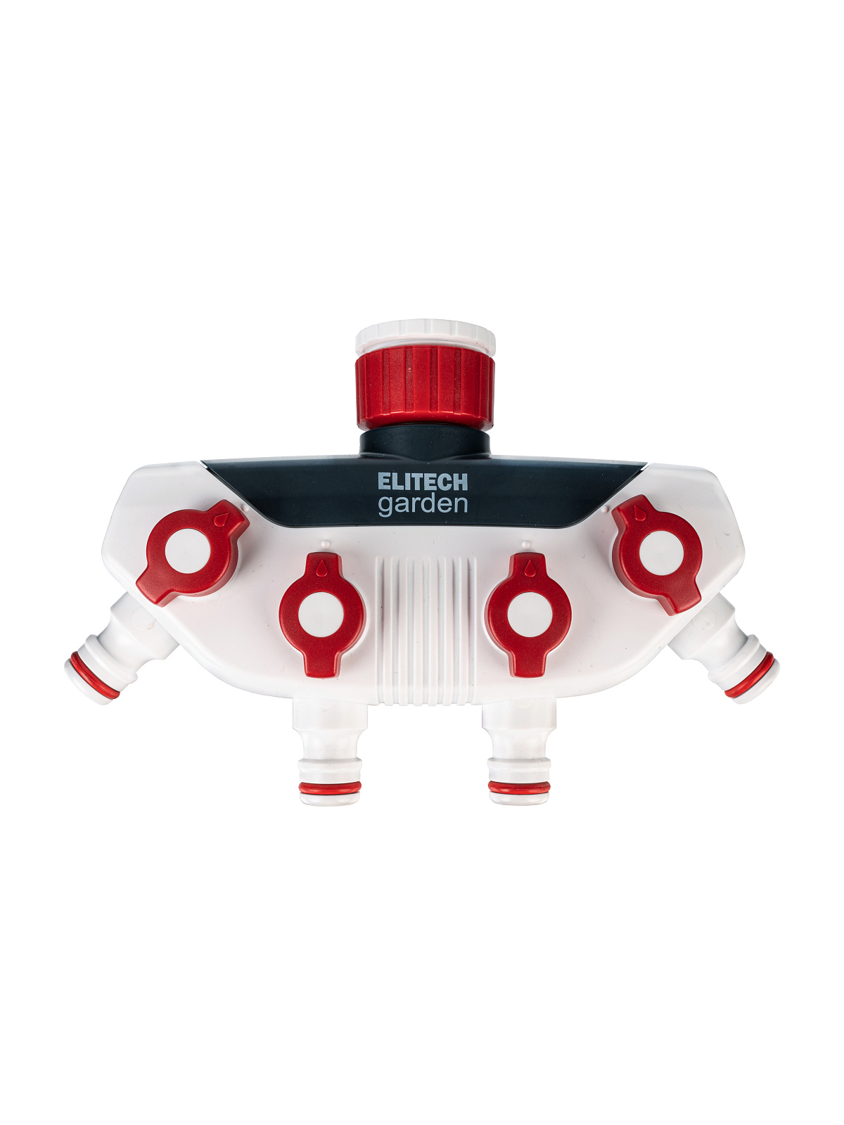 Разделитель потоков 4-х канальный Размер: 19x5,2x12,5 см Вес: 202 г С переходником для отвода 24,1 мм (G3/4) и 30,3 мм (G1) сверху Ручка шарового крана для каждого направления для включения / выключения подачи воды Материал: ABS Рабочее давление: 6 бар