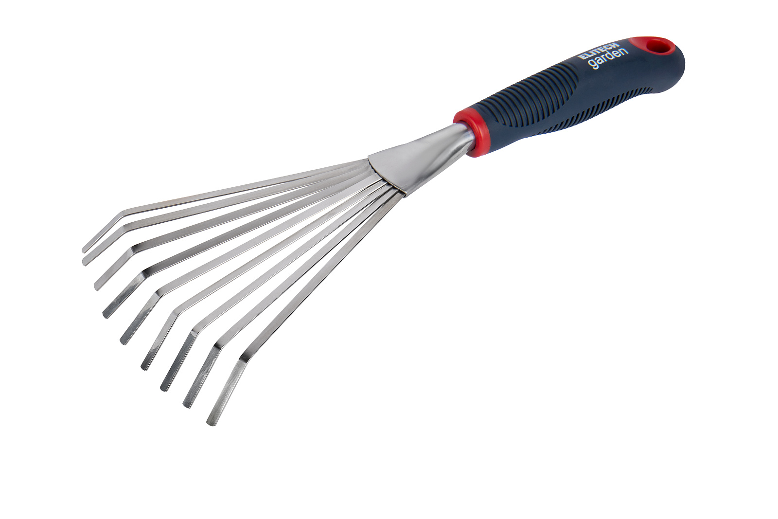 • Веерные грабли из нержавеющей стали для удобного рыхления почвы. • Эргономичная ручка из нескользящего материала для комфортного захвата. • Отверстие для подвеса при хранении.