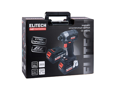 Винтовёрт аккумуляторный ударный без щеточный ELITECH HD CS 2003SL (E2201.055.02) 20В, 2х4,0Ач, ELP, 0-3600у\м, 330Нм, кв 1\4", 1.2кг, ч, М6-М12, чемодан, подветка.