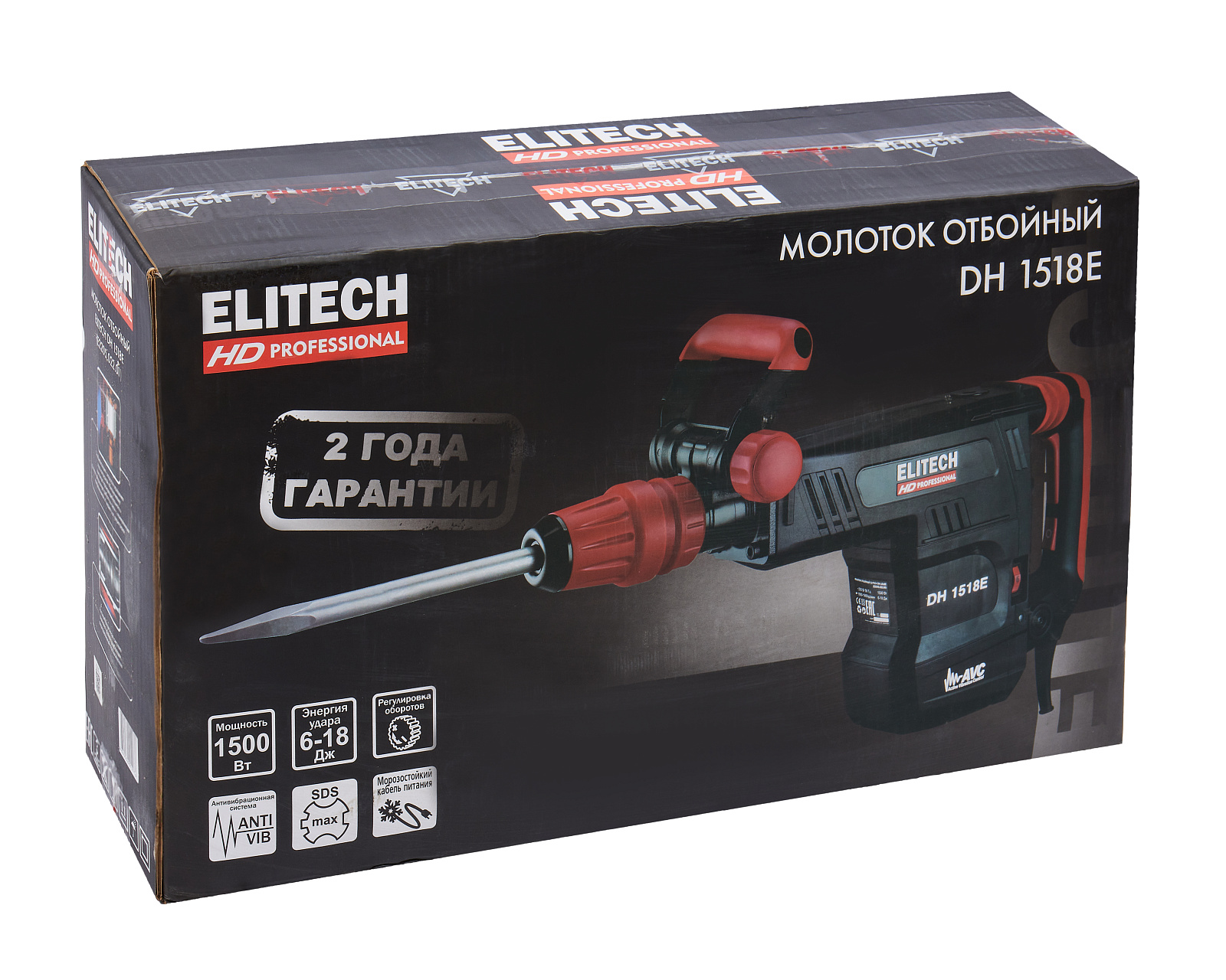 Отбойный молоток ELITECH HD DH 1518E (E2205.022.01) SDS-max. Предназначен для разрушения твердых материалов (бетон, дорожные покрытия, кирпич, штукатурка, природный и искусственный камень), штробления пазов и каналов, проделывания проемов в стенах из кирпича и бетона и других строительно-монтажных работ с использованием соответствующей оснастки. В качестве рабочих насадок с отбойным молотком могут использоваться пика и зубило.