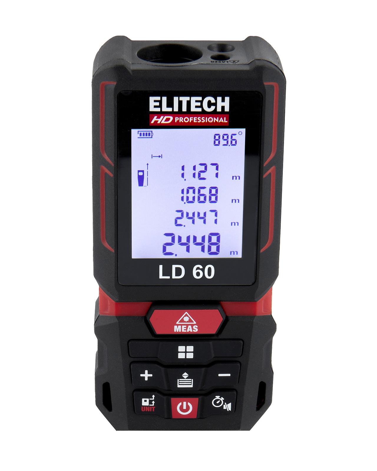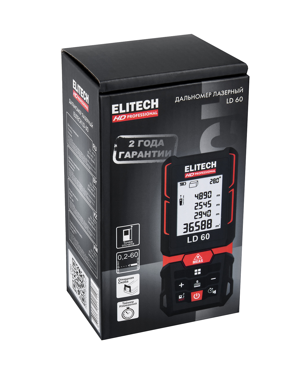 ELITECH HD PROFESSIONAL Дальномер ELITECH HD LD 60. Предназначен для быстрого измерения расстояния с высокой точностью. Имеет дополнительные функции для измерения площади, объема, угла наклона и высоты с помощью режимов косвенного измерения.