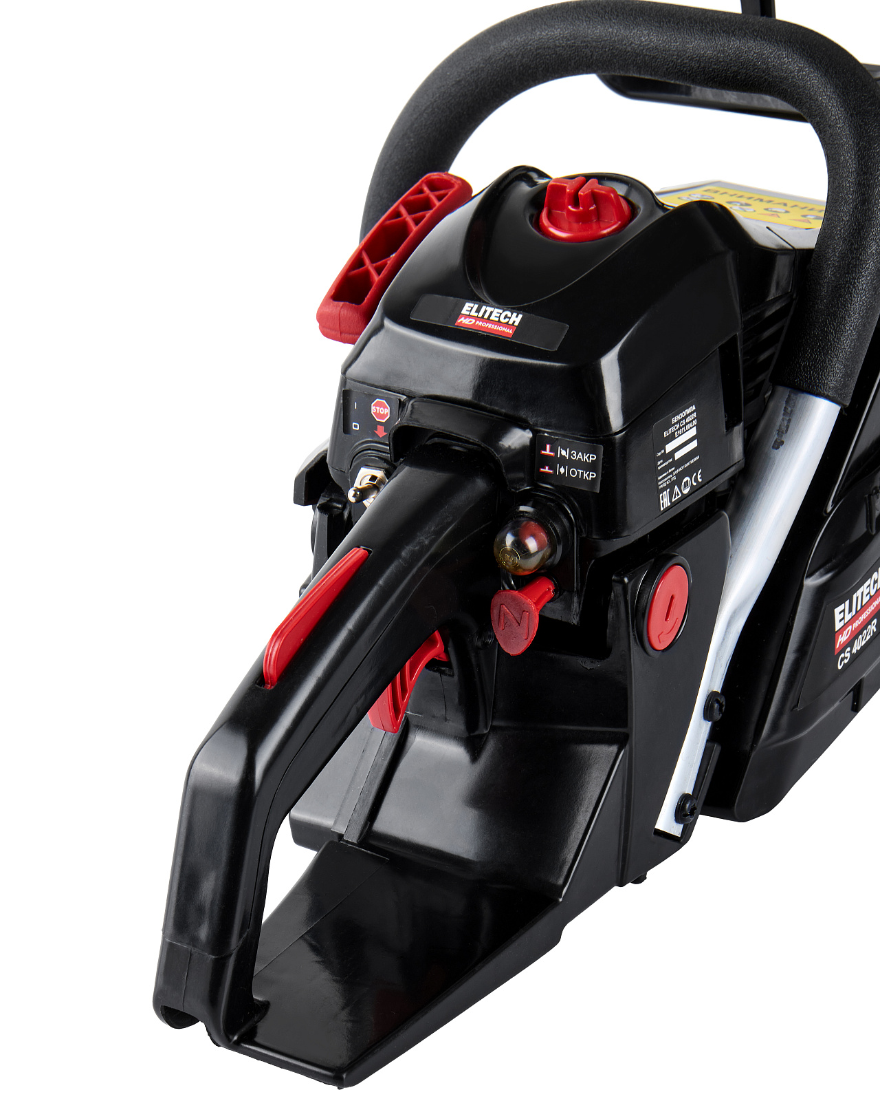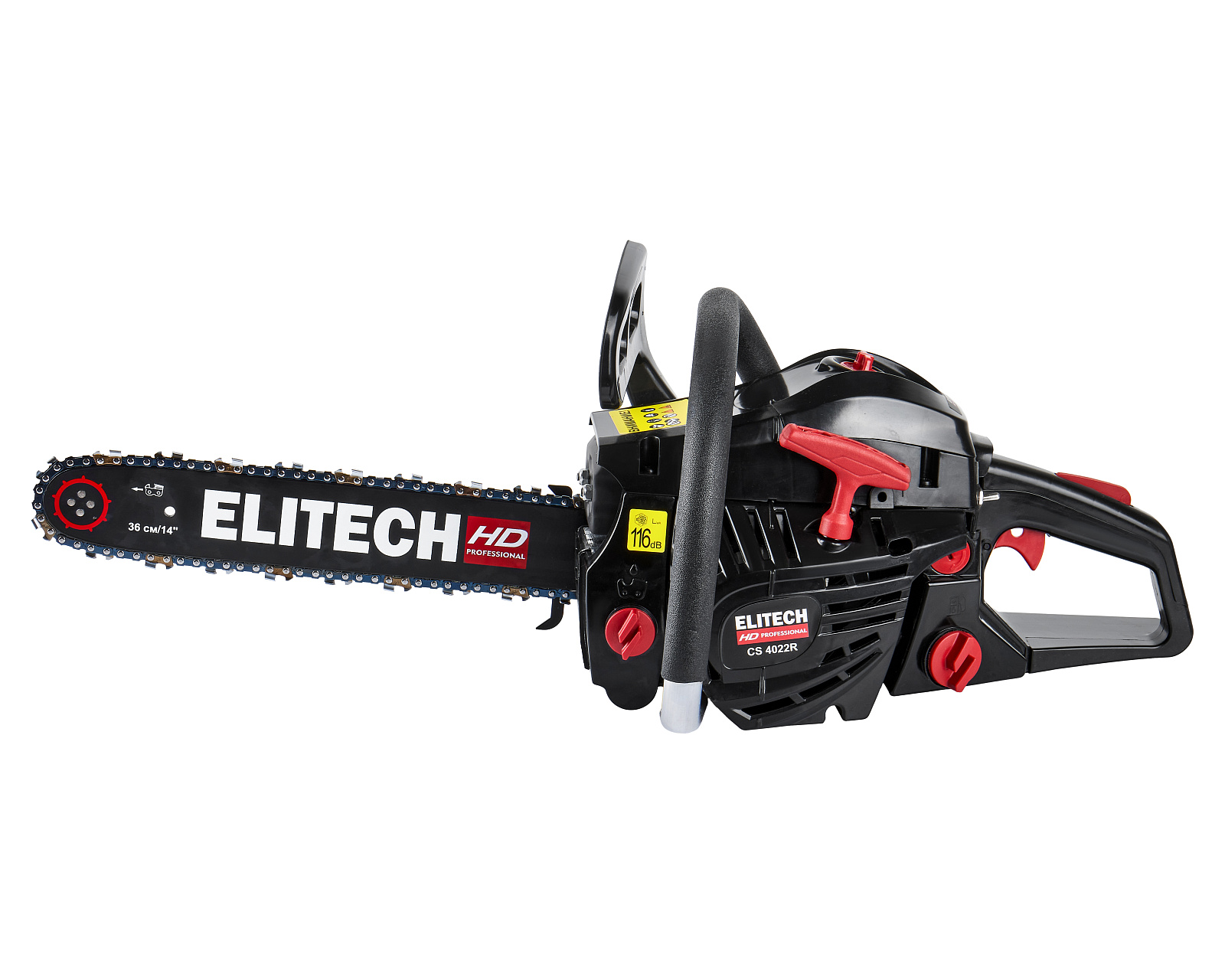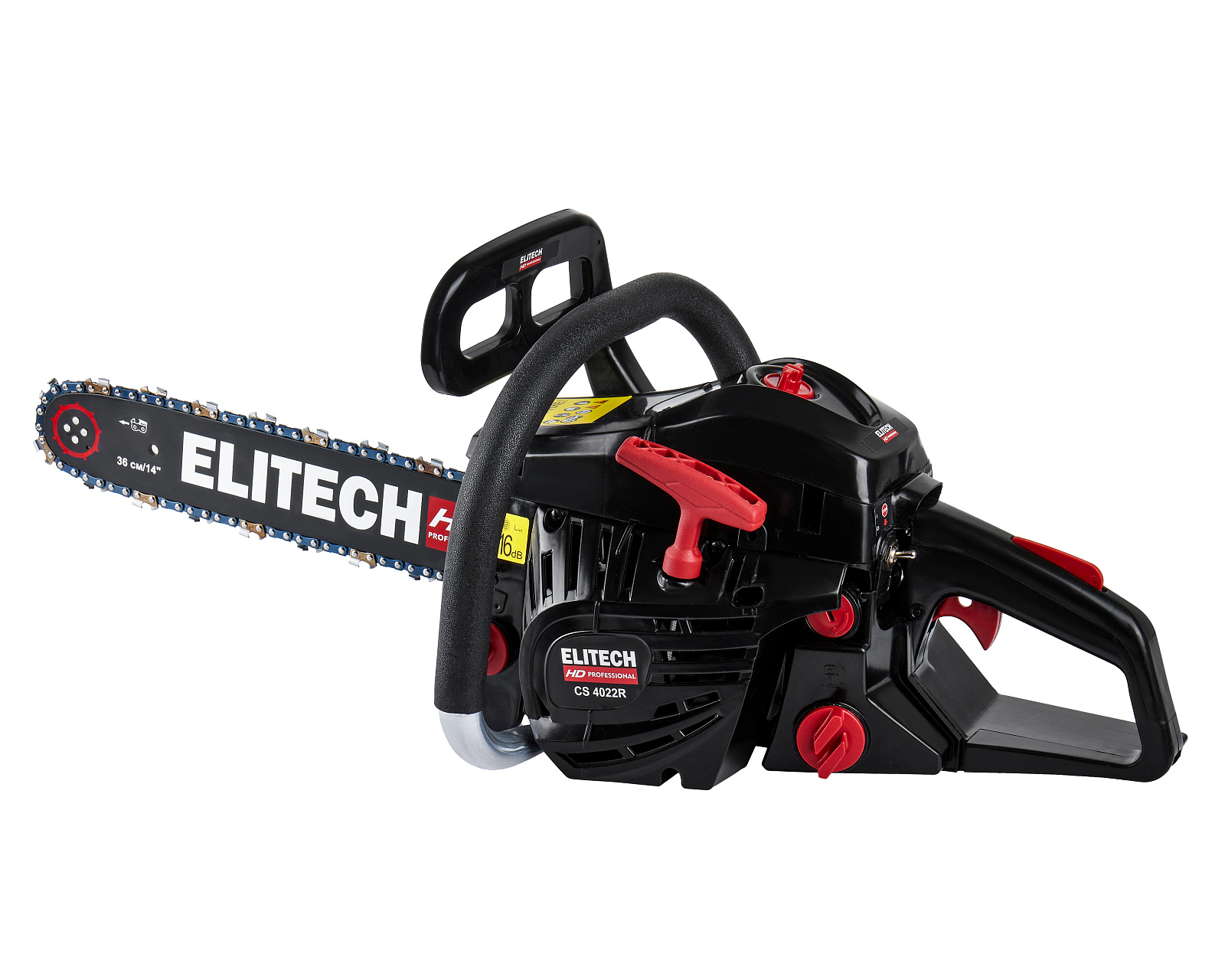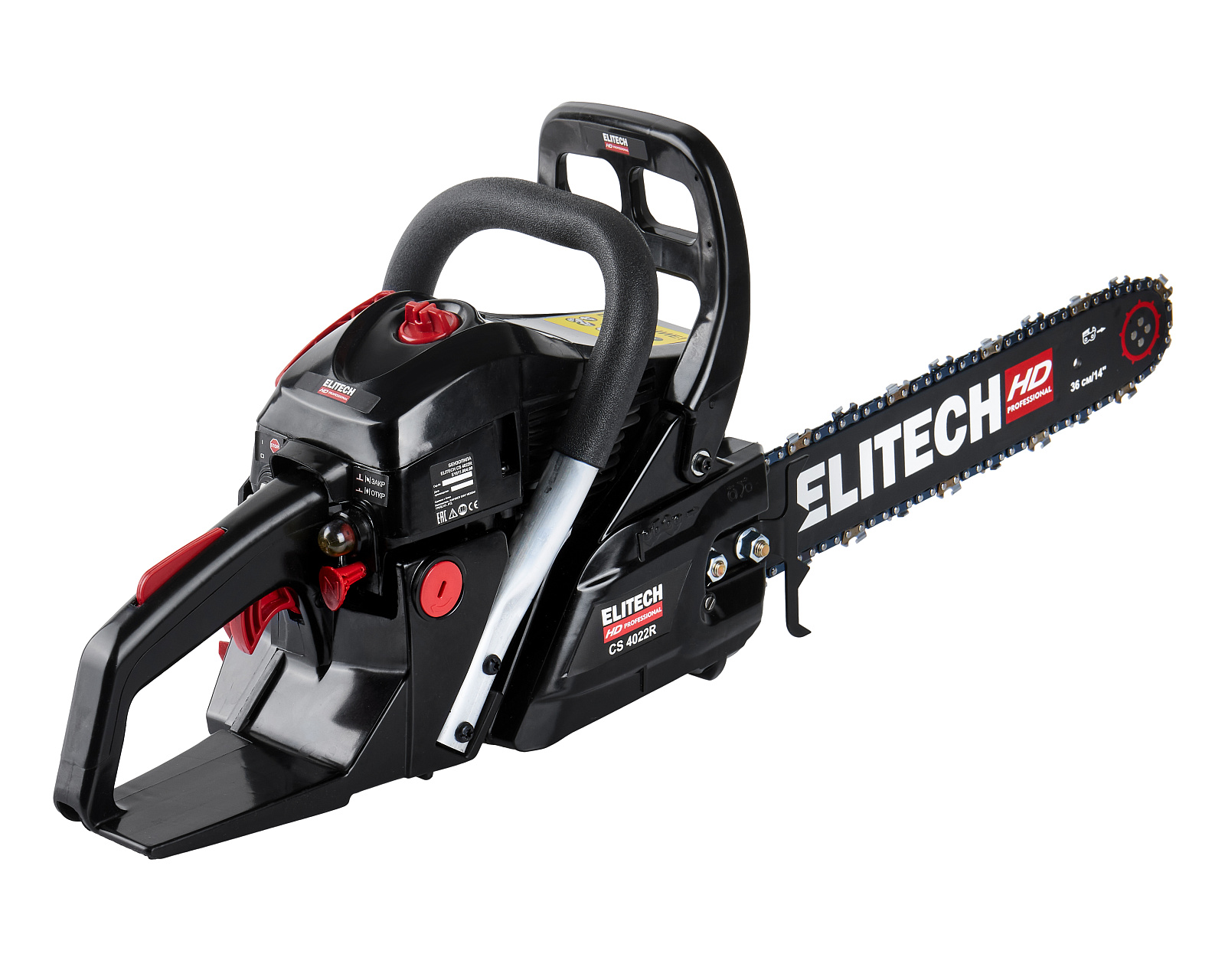 Цепная пила бензиновая ELITECH HD CS 4022R (E1611.004.00). Предназначена пиления древесины вне помещений, на открытом воздухе. Выполняемые операции: валка деревьев, обрезка сучьев, раскряжевка ствола на сортименты, пиление дров. Цепная пила оснащена двухтактным двигателем внутреннего сгорания, работающим на смеси бензина и 2-тактного масла, приводящим в движение пильную цепь, двигающуюся по направляющей шине