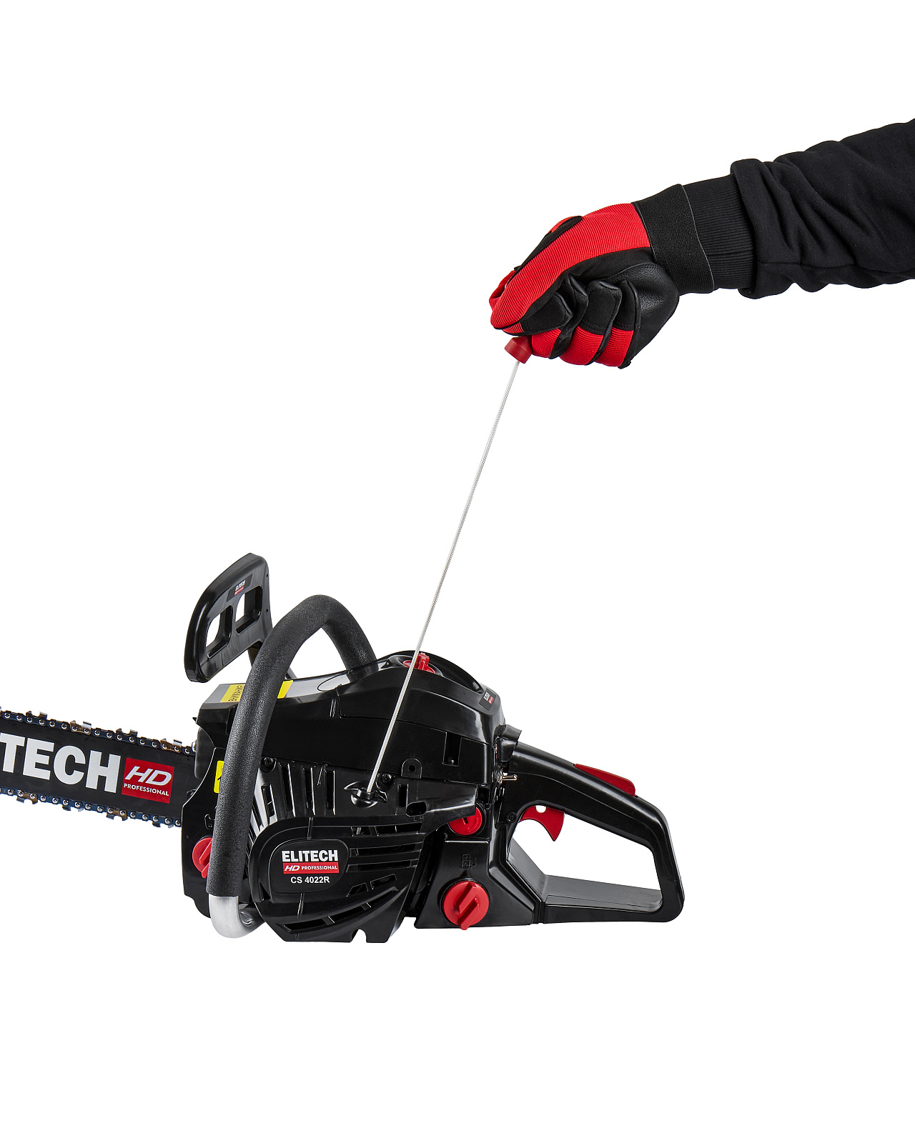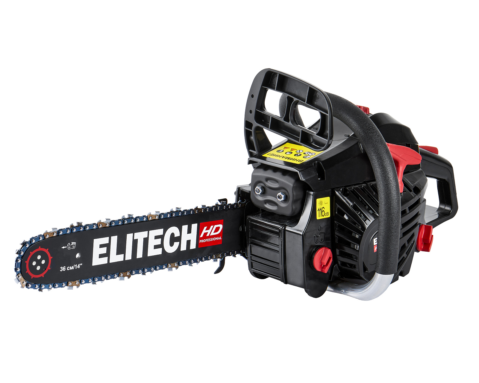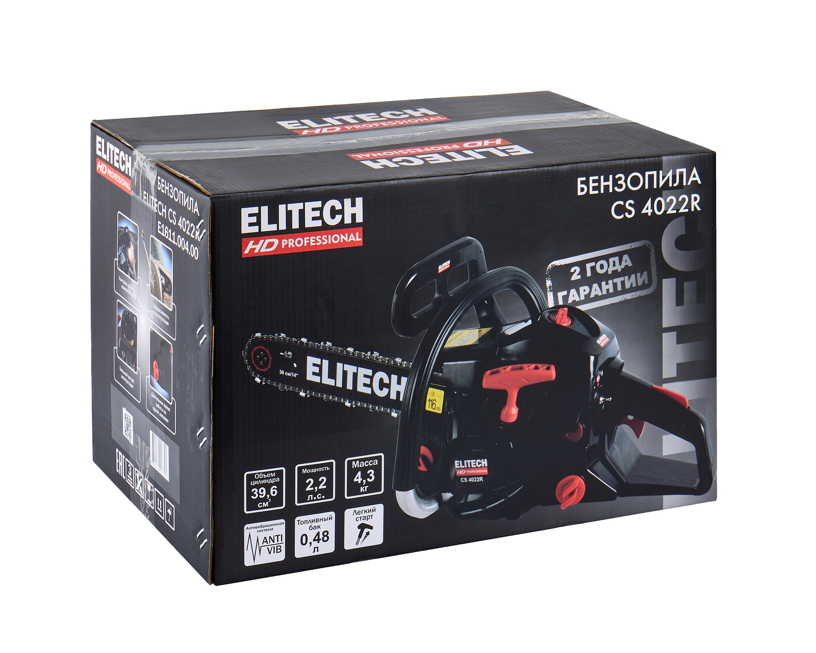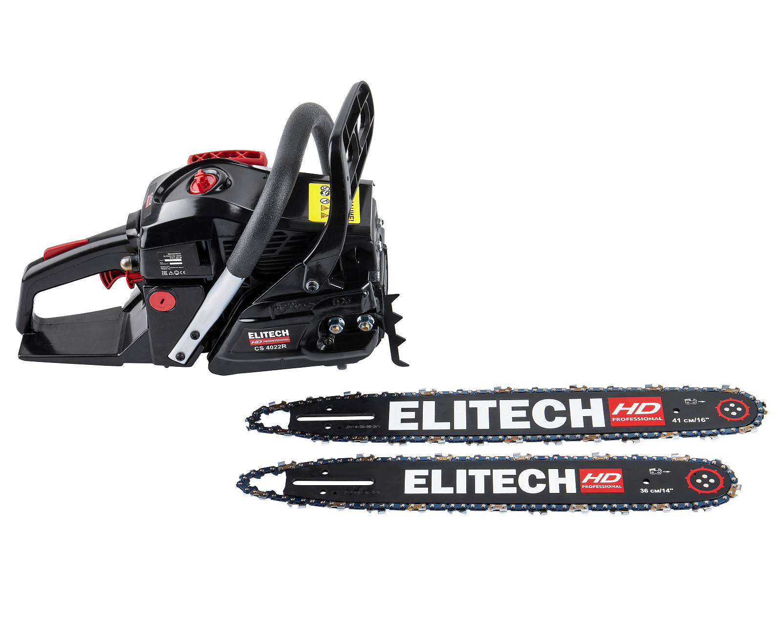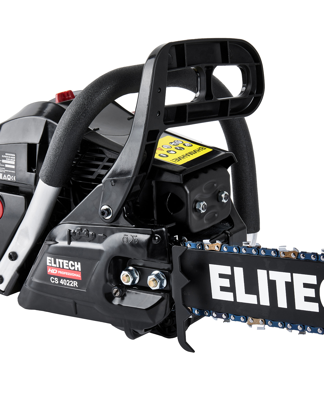 Цепная пила бензиновая ELITECH HD CS 4022R (E1611.004.00). Предназначена пиления древесины вне помещений, на открытом воздухе. Выполняемые операции: валка деревьев, обрезка сучьев, раскряжевка ствола на сортименты, пиление дров. Цепная пила оснащена двухтактным двигателем внутреннего сгорания, работающим на смеси бензина и 2-тактного масла, приводящим в движение пильную цепь, двигающуюся по направляющей шине