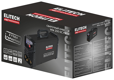 Сварочный инвертор ELITECH HD WM 200 DC PULSE. Предназначен для аргонодуговой сварки стали (углеродистой и нержавеющей) методом LIFT TIG неплавящимся вольфрамовым электродом в среде инертного защитного газа (аргона), а также для электродуговой сварки (ММА) штучным покрытым электродом, в том числе с применением импульсного режима.