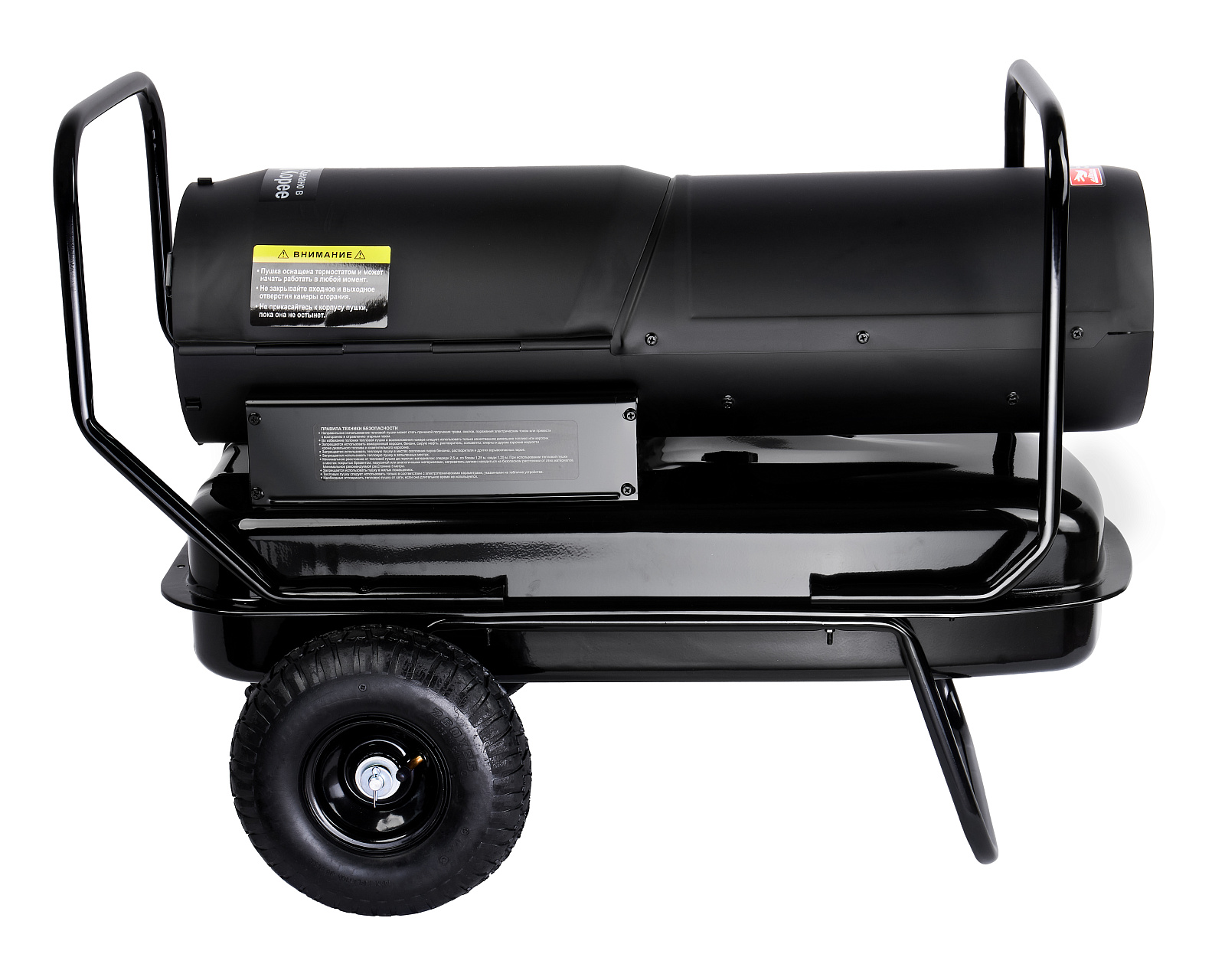 Дизельная тепловая пушка прямого нагрева (или воздухонагреватель) мощностью 37 кВт и площадью обогрева 290 кв.м и топливным баком на 40 литров, предназначена для работы на открытых/полузакрытых площадках и временного обогрева/просушки хорошо проветриваемых помещений или с работающей приточно-вытяжной вентиляцией.