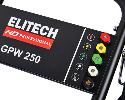 Мойка высокого давления ELITECH HD GPW 250. Предназначена для мойки автомобилей и любой другой техники, а также террас, тротуарной и фасадной плитки, фасадов зданий и для прочистки дождевых сливов. Мойка должна работать только с чистой водой без механических примесей. Для бесконтактной мойки с применением пеногенератора используется специальное средство, предназначенное для этих целей.