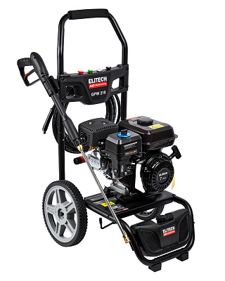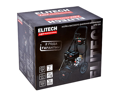 Мойка высокого давления с бензиновым двигателем мощностью 7 л.с., с четырьмя распылительными насадками, предназначена для мойки автомобилей и любой другой техники, а также террас, тротуарной и фасадной плитки, фасадов зданий и для прочистки дождевых сливов. Мойка должна работать только с чистой водой без механических примесей. Для бесконтактной мойки с применением пеногенератора используется специальное средство, предназначенное для этих целей. Мойка Elitech является самовсасывающей и может забирать воду, как из водопровода, так и из емкости с водой.Мойка может эксплуатироваться в следующих условиях: - рабочая температура окружающего воздуха – от +1°С до +40°С; - влажность – до 80% при температуре +25°С; - высота над уровнем моря до 1000 м.
