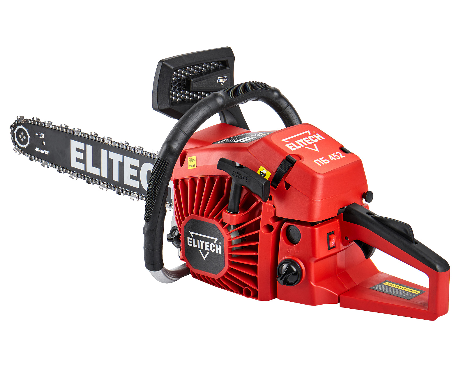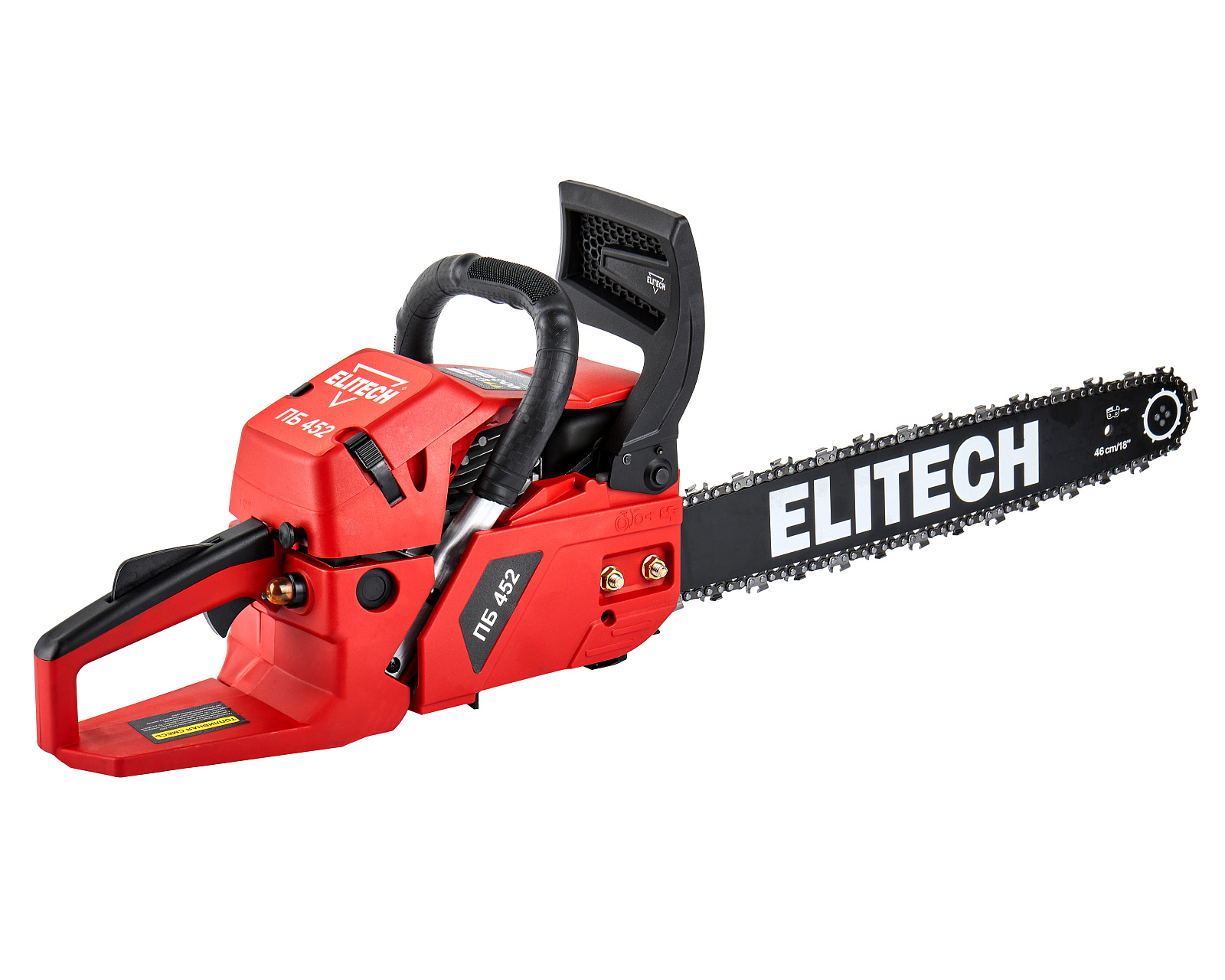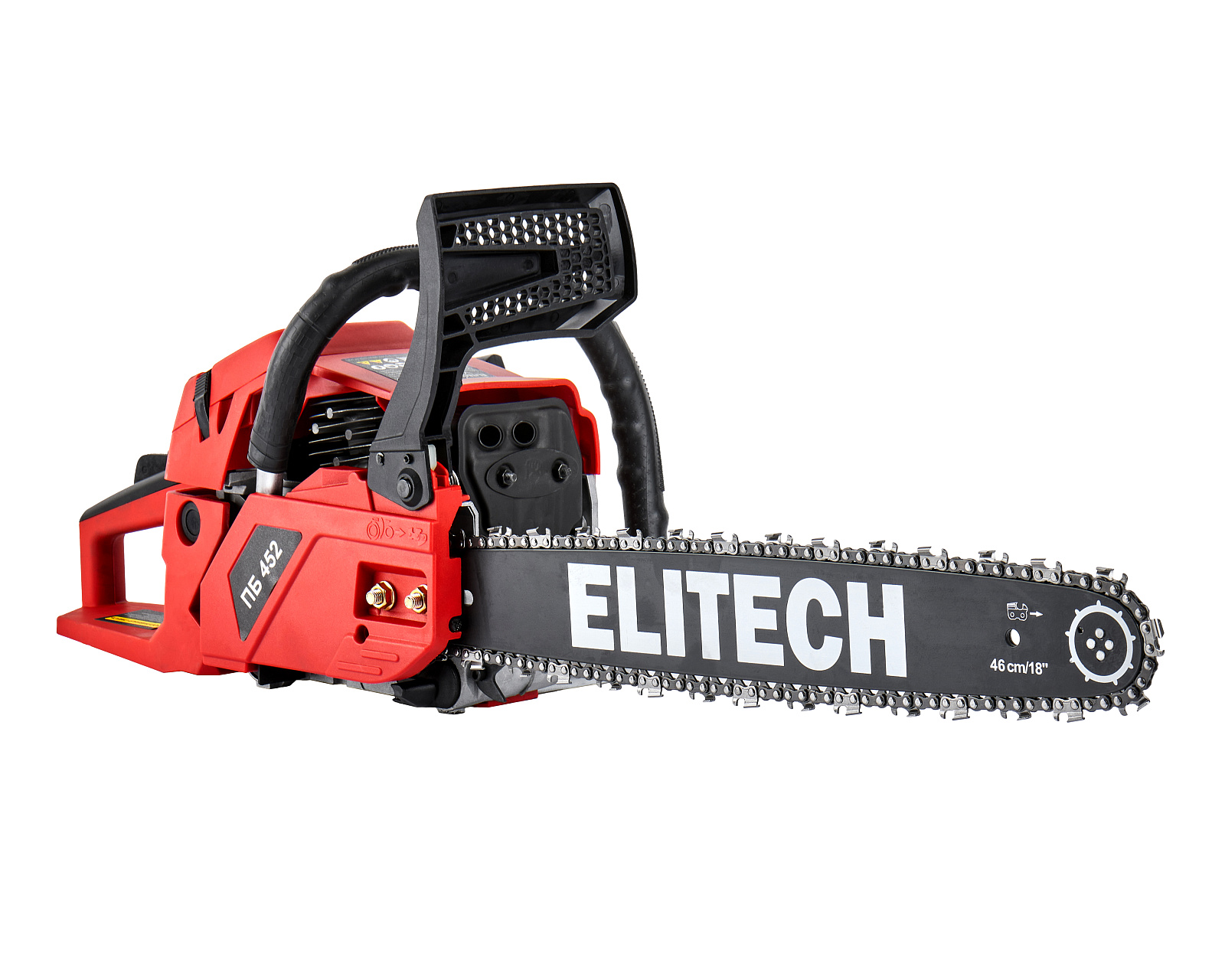 ELITECH Домашний мастер Пила цепная бензиновая ELITECH ДМ ПБ 452 (E1611.013.00). Предназначена для пиления древесины вне помещений, на открытом воздухе и применяется для валки деревьев, обрезки сучьев, раскряжевки ствола на сортименты, пиления дров. Цепная пила оснащена двухтактным двигателем внутреннего сгорания, работающим на смеси бензина и 2-тактного масла, приводящим в движение пильную цепь, двигающуюся по направляющей шине.